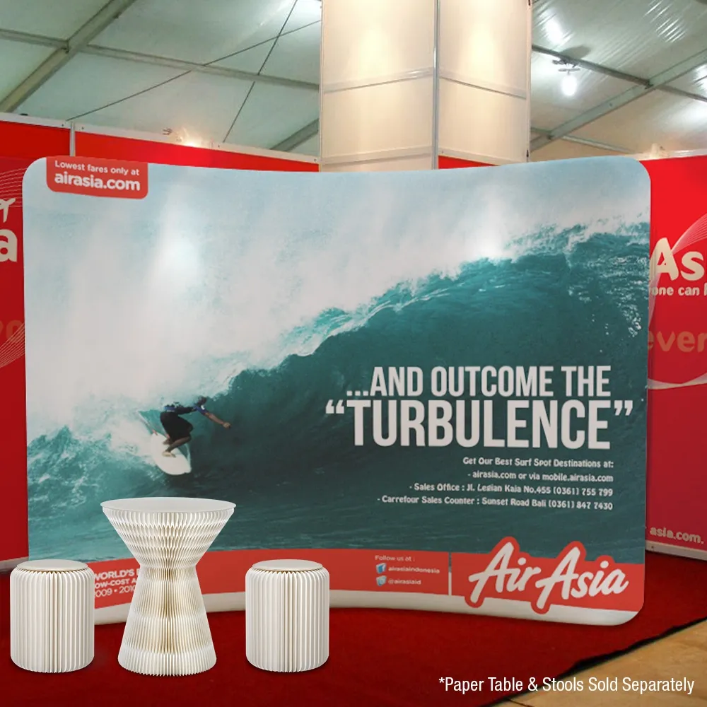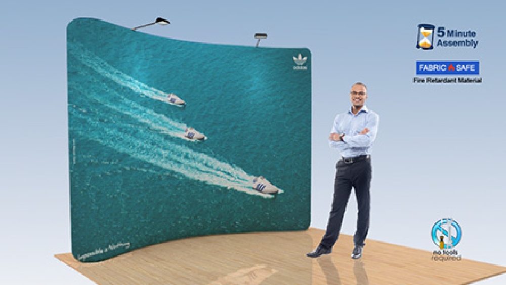 The exhibition stand, also known as pop up exhibition displays, have an aluminium frame that snaps together with no tools required in only a few minutes. The durable frame is also lightweight to make transport a simple task. The pop up display also includes a hard shell carrying case for bringing the banner to and from events. When not in use, this counter helps keep the graphics from gathering grime and dust. This exhibition stand is a seamless stand, with the fabric graphic covering the entire unit, and made taut against the frame using a zipper. The professional appearance of the popup stands help to ensure your business is set apart from the competition, drawing in customers with amazingly vivid imagery against a huge backdrop. Order your trade show stands today!
