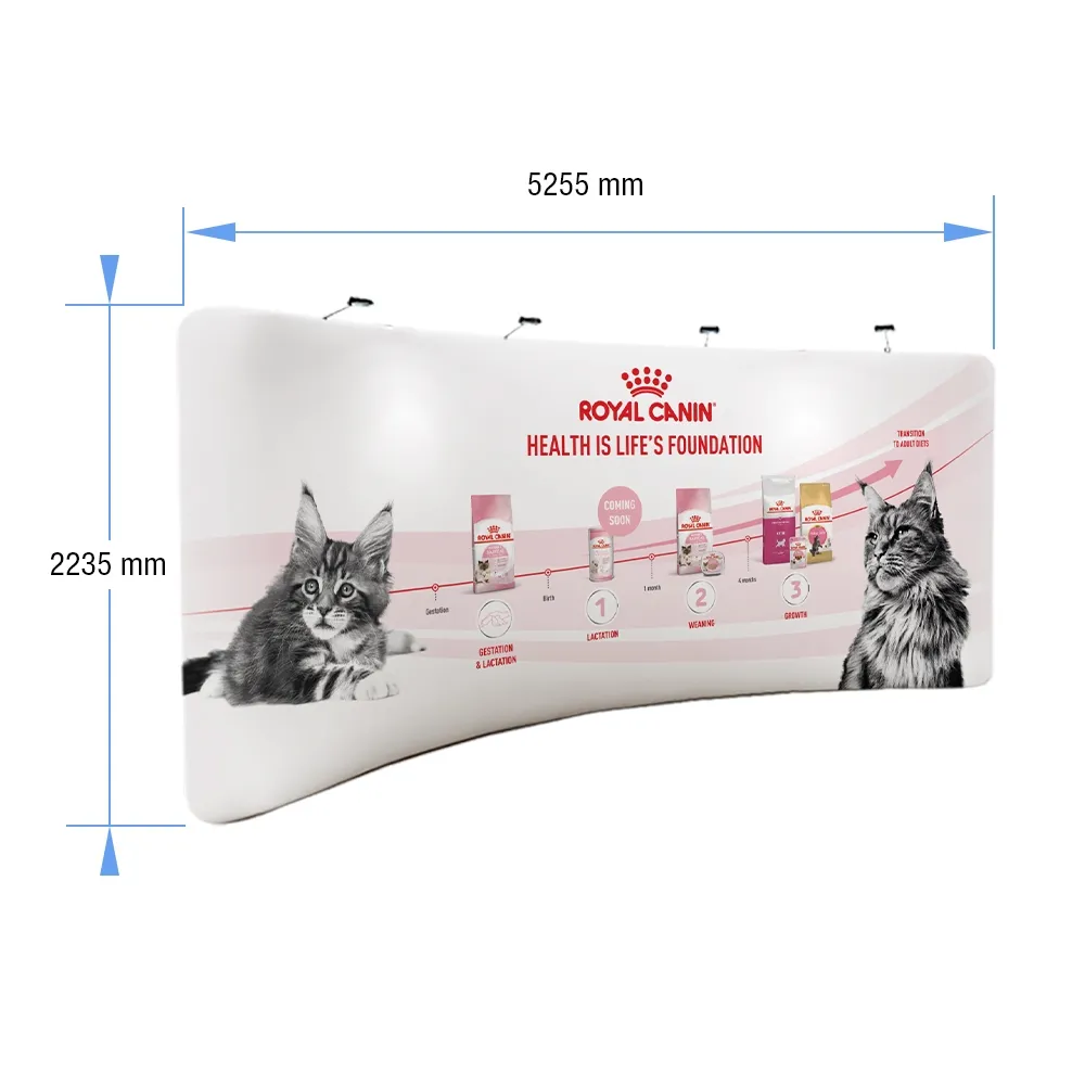 - Booth display walls are 2.2 x 5.2m, with the curved design offering a great look for events