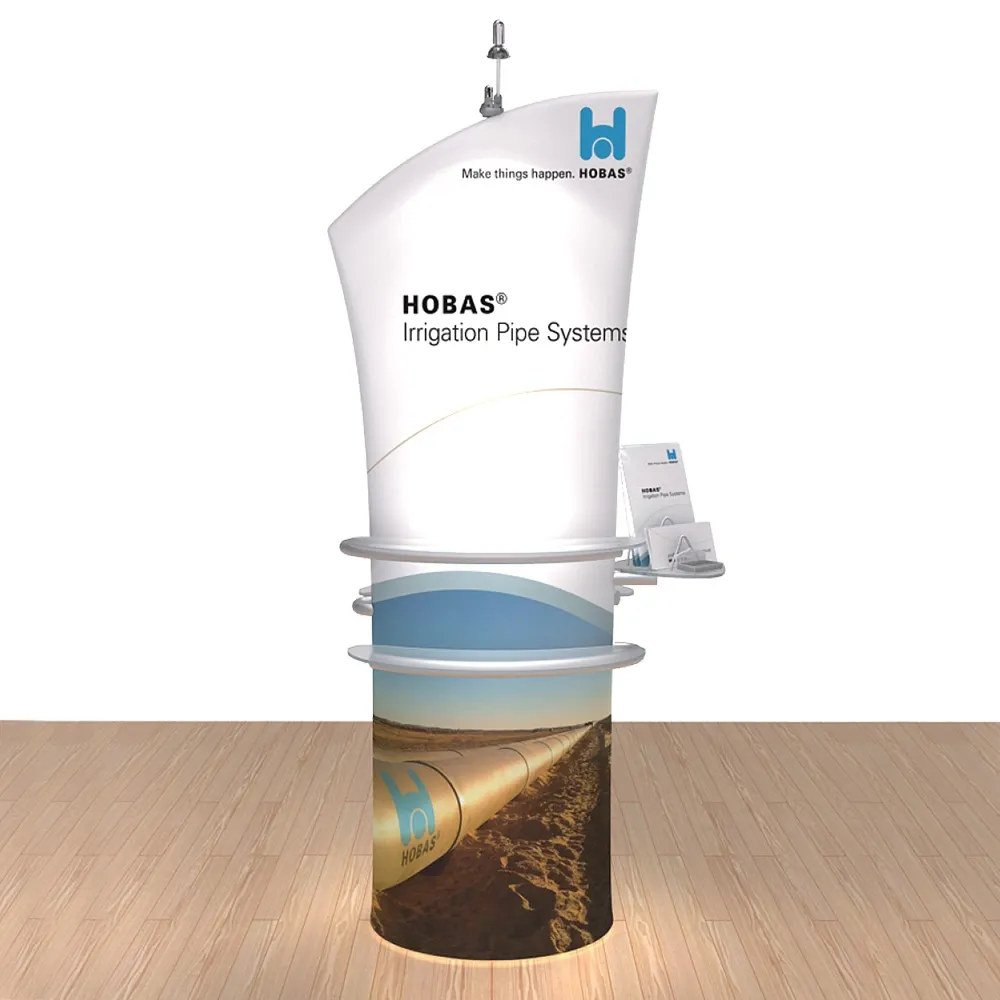 The display panel, also known as trade show displays and a stand for exhibition, has an LED light that mounts to the top of the unit for each side of the stand. This light illuminates the stand, highlighting specific parts to draw attention. The display includes a carrying case that makes transport to and from events an easy task. The stand for exhibition, display panel also has a curved top that brings a unique look that will draw attention to your company in any area. These displays exhibits help draw attention to your business while being a practical marketing tool that will be beneficial to your company.