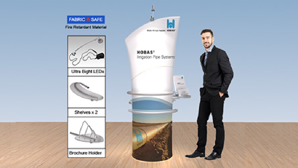 - Bright LED light illuminates display to draw attention to colurful fabric with your custom designs