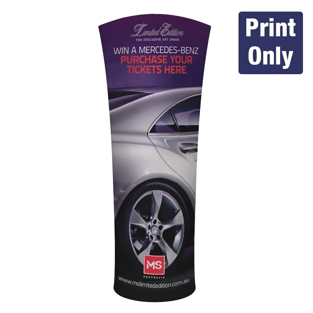 Buy this replacement graphic for SLWBRCR or SLWBRCRLED to outfit your exhibition stand with new information or fresh designs. The wrap uses a zipper to close around the aluminium frame with a seamless look. A digital printing process has your custom designs in full colour thanks to the dye-sublimation process, accurately portraying graphics on the fabric with rich imagery to help draw passerby attention. The polyester fabric is machine washable for easy cleaning between uses and fire retardant for safety. Contact our in-house team for any assistance with design, with three tiers available to help you address your exact needs. Slimline Warehouse ships fast to anywhere in Australia, buy online today!