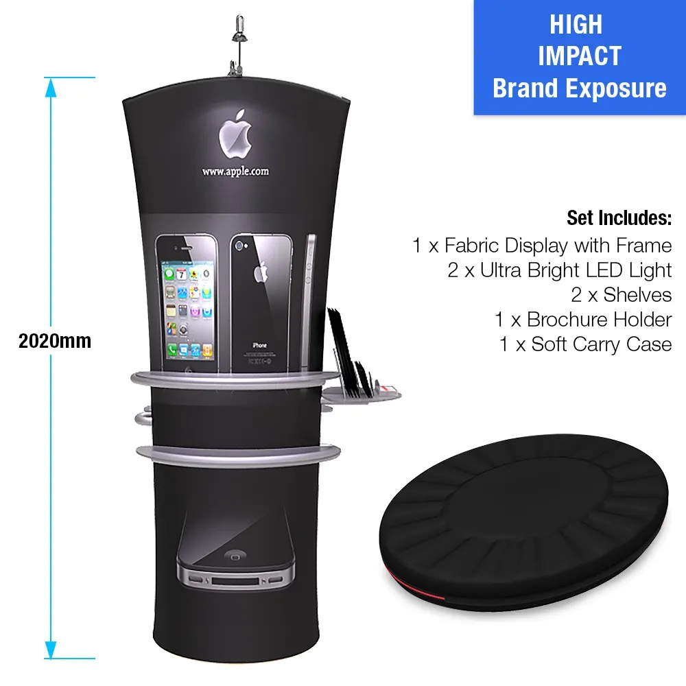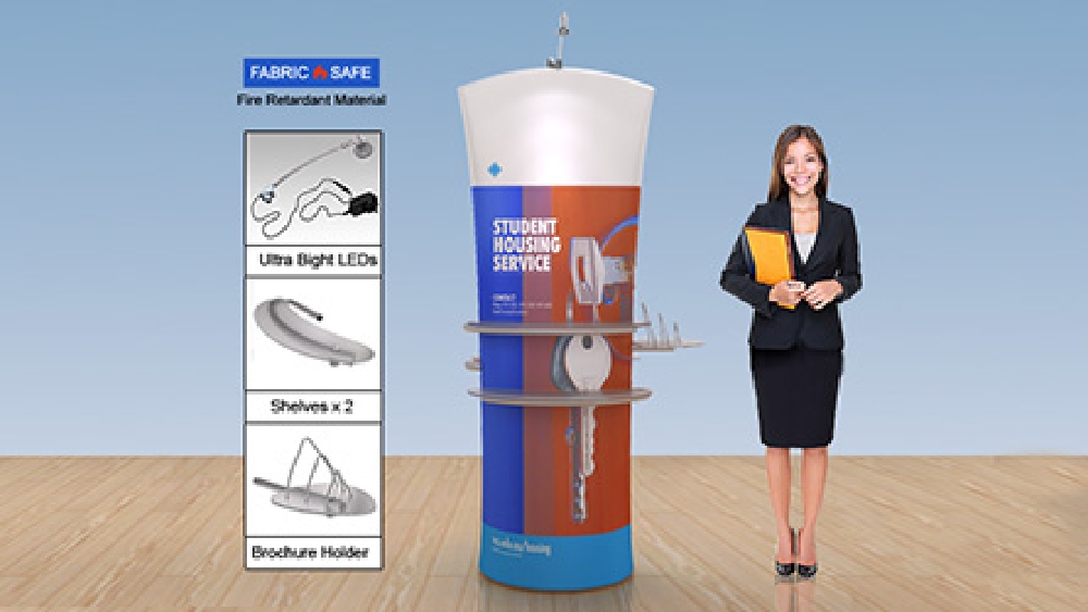 Our entire line of trade show exhibits help to get the attention of passersby and draw them towards your booth. With many styles and designs of exhibition stands, there is sure to be a display that fulfills your business needs. The double-sided tradeshow exhibit has custom graphics on polyester fabric printed using a dye-sublimation process that will not fade or peel over time. The exhibit booths have shelves included for displaying merchandise that weighs up to 2.3 kgs as well! Reach more customers using these double-sided displays with LED lights that illuminate your graphics!
