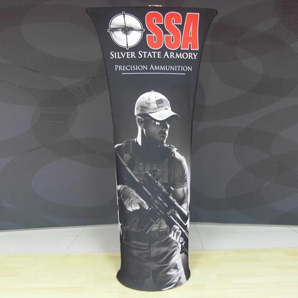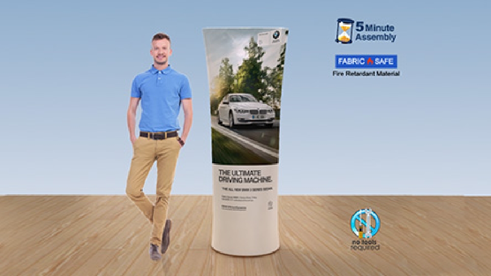 The pop up stand features full-colour graphics printed with a dye-sublimation process to ensure true colours that won't fade or peel over time.. The lightweight seamless displays uses a tool-free assembly that is not hard to set-up, requiring less than 5 minutes.