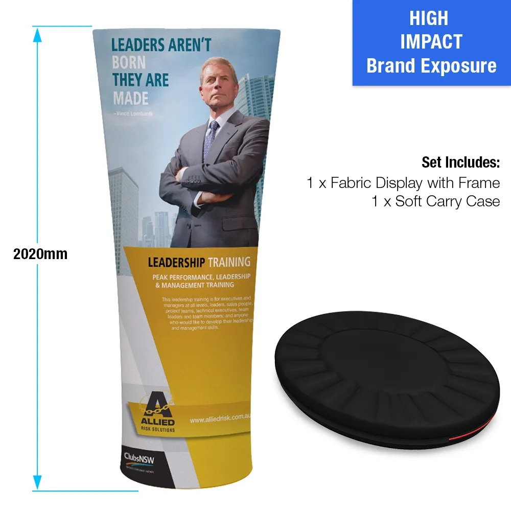 This display for exhibition features a lightweight aluminium frame that holds up your custom graphic. The popup display is a sturdy unit that can be used in heavily trafficked areas without issue, even with the portable lightweight design! The pop up exhibit display, display for exhibition uses a dye-sublimation process to digitally print your custom graphics onto the non-stretch polyester fabric.