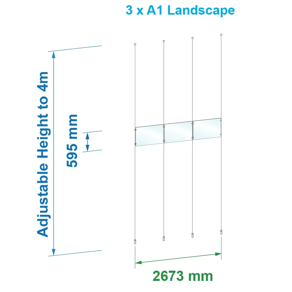 - (4) 4m long steel cables with ceiling & floor hardware provided