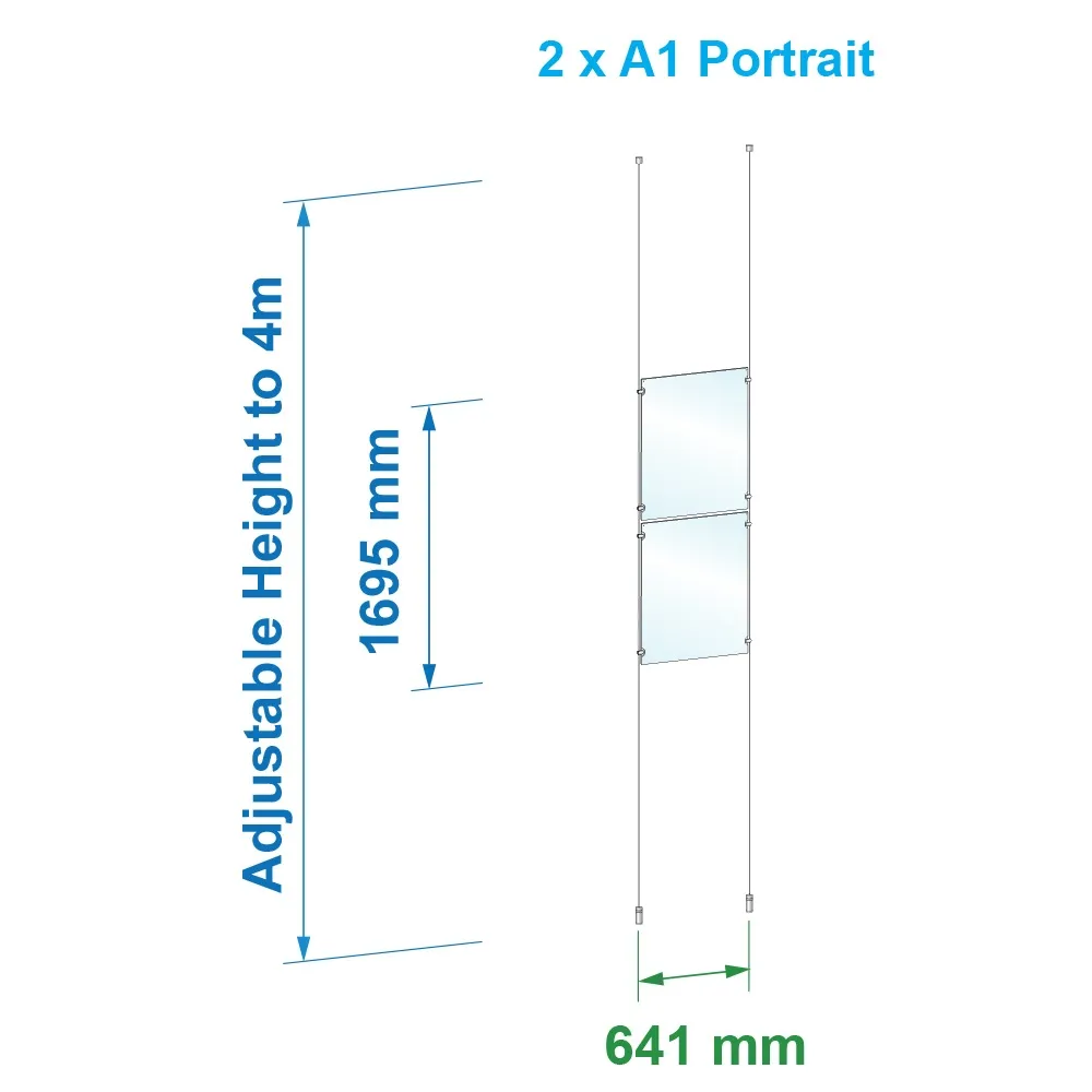 The window cable displays use portrait A1 acrylic frames to displays graphics. These 3mm acrylic frames have button magnets embedded which keep frames closed and helps maintain a professional appearance. The hanging wire systems, window cable displays are dual-sided to advertise in two directions at once. These window cable displays are found in real estate agencies, retail stores, information centres, and other like places.