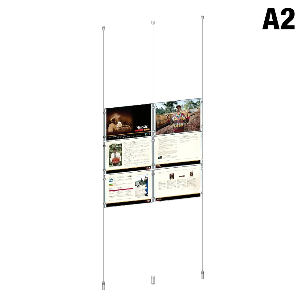 These estate agent window displays, part of our line of hanging poster signs, use cables and standoffs to suspend the frames between the floor and ceiling to create an eye-catching floating effect that works for any type of business! The top and bottom fittings are hand-tightened to keep wires taut, with the standoffs using an edge grip to attach the frames to cables and each other securely. There are (3) wires included that are 4m long and can be cut to size to work with nearly every businesses floor to ceiling span. Slimline Warehouse has same day shipping available with this and most other in stock products if purchased by 3pm EST, buy online today for fast dispatch Australia-wide!