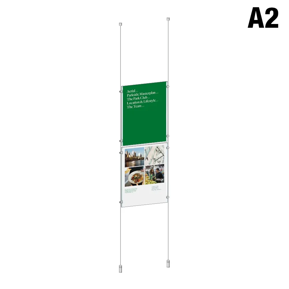 Cable system can also be purchased with additional frames in each column, or different sizes such as A1, A3, & A4. The wire window kits are also available in landscape or portrait orientation. Many other products on the main shopping page are in different categories to outfit various businesses. At Slimline Warehouse, we provide quality products at great prices, that despatch same day when in stock & ordered by 3pm!