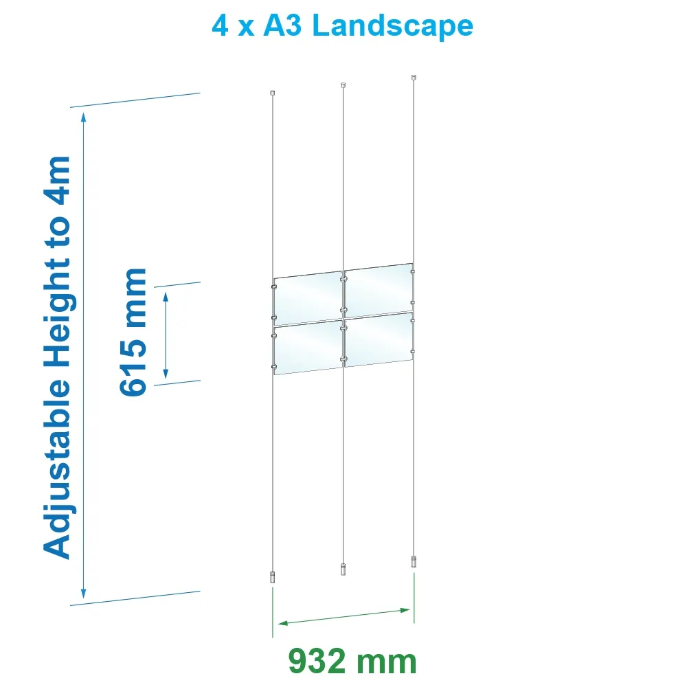 - (4) A3 (420 x 297mm) acrylic panels in landscape orientation