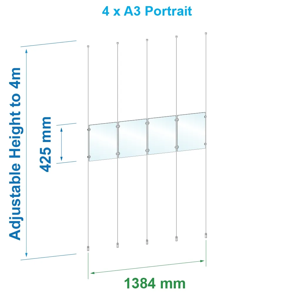 - (5) 4m long steel cables with ceiling & floor hardware provided