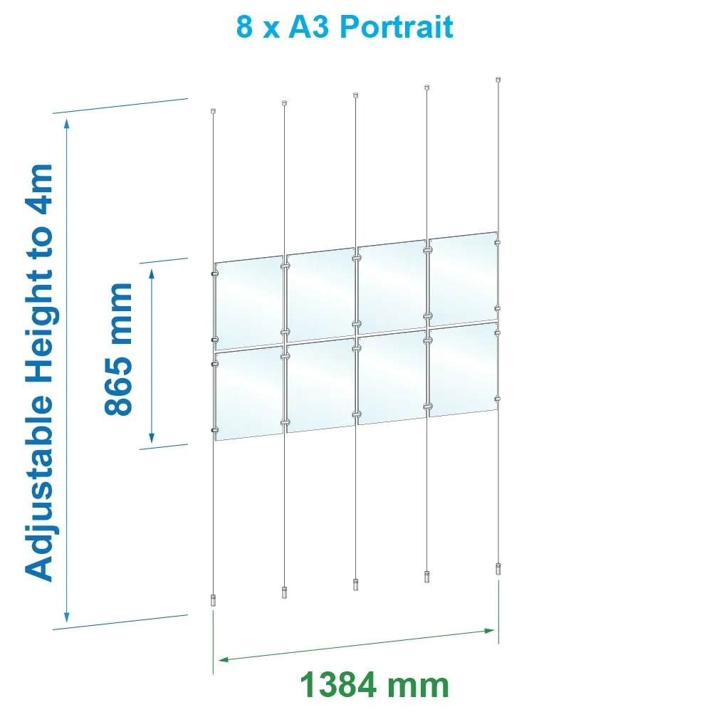 - (8) A3 (420 x 297mm) acrylic panels in landscape orientation