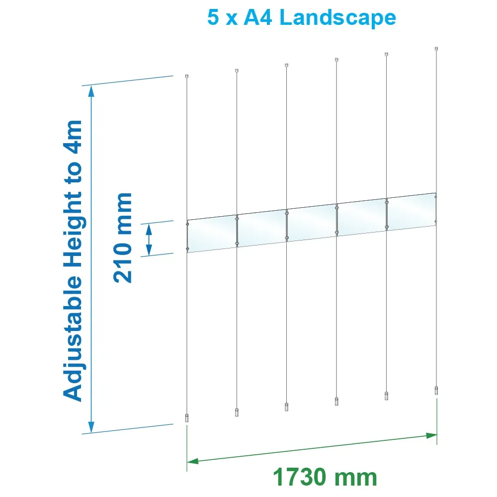 This A4 cable display, like many cable hanging systems, include all the hardware you need for full installation. The (6) cables are each 4m long and can be cut to size to work with different distance locations without worry. The top and bottom fittings are easily tightened to ensure the cables are taut, with the stainless steel fittings securely attaching the frames to the wires and each other. Slimline Warehouse ships same day Australia-wide with this and most other in stock products purchased by 3pm AEST, buy online today for fast shipping to you!