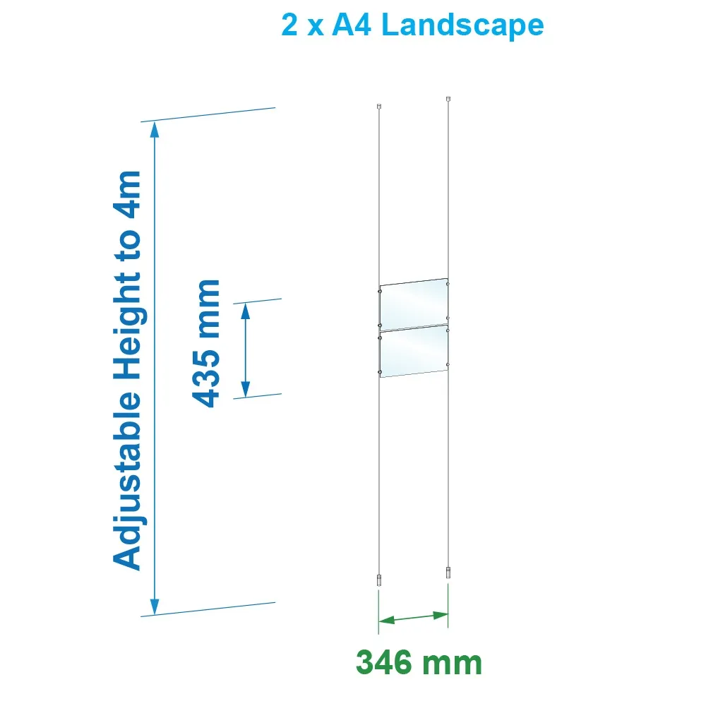 - (2) 4m long steel cables with ceiling & floor hardware provided