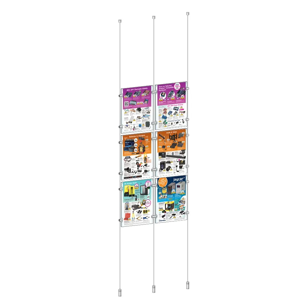 The A4 window displays, like floor to ceiling cable systems, use steel cables to suspend the posters between the floor and ceiling! The 3 included wires are 4m long and can be cut to size, able to easily accommodate the floor to ceiling span in most real estate agencies, retail stores, information centres, and more! The joiners and standoffs use an edge grip to secure the posters to each other and attach the wires to create the floating effect. Slimline Warehouse has same day shipping available with this and most other in stock products if purchased by 3pm AEST, buy online today for fast dispatch to you!