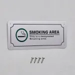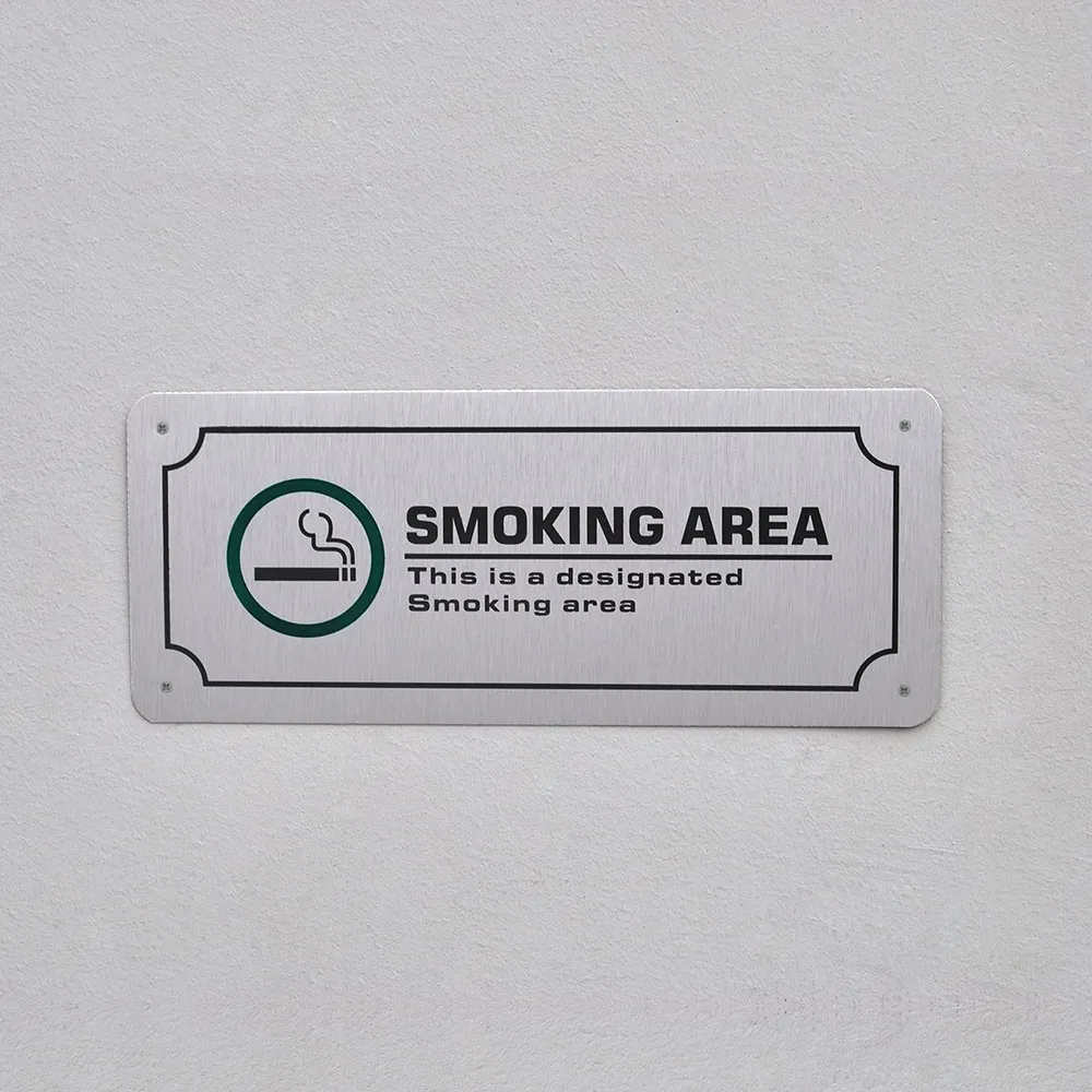 The smoking sign is made of .5mm thick aluminium, providing a durable display that is able to be used in heavily trafficked areas without any worry of breaking down. The no smoking display, smoking sign uses screen printed graphics for high visibility. The smoking area display allows customers & patrons to know exactly where the designated smoking area is. This smoking sign is used at restaurants, bars, exhibition centres, airports, and other public areas to denote where smokers are allowed to be.