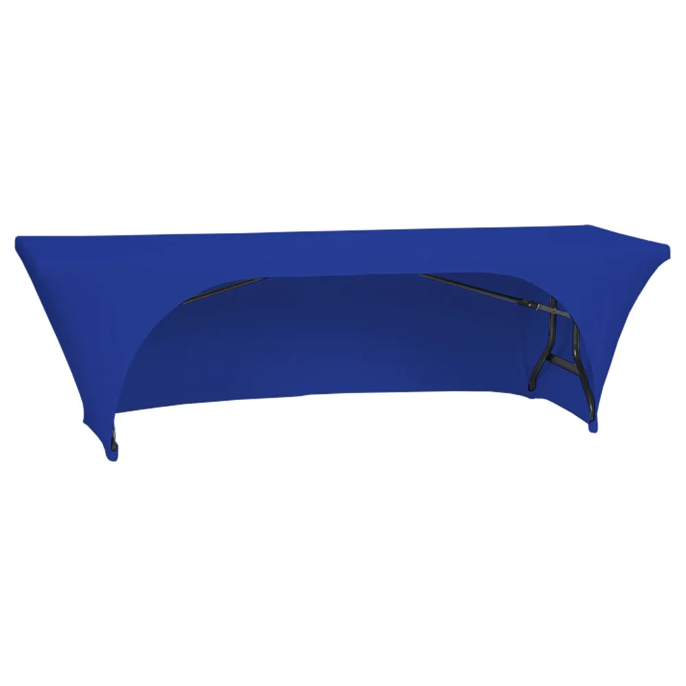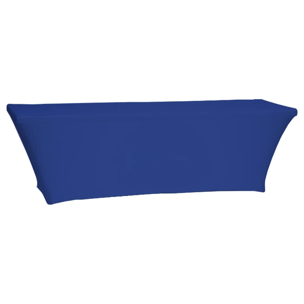 Use this fitted tablecloth to make almost any standard-sized folding 8 ft table presentation ready! The tight spandex table cloth is designed for 2438 x 762 x 737mm tables, with the stretch fabric tightly covering three sides. This allows even discoloured or slightly scuffed tables to be used whilst still conveying a professional appearance. This table cloth covers three sides of the table snugly, with the back exposed. This cut out provides legroom to sitting employees whilst offering access to the inside for storage or placing personal items. This table cover is great for use in exhibition halls, retail stores, shopping centres, universities, information centres, and more!