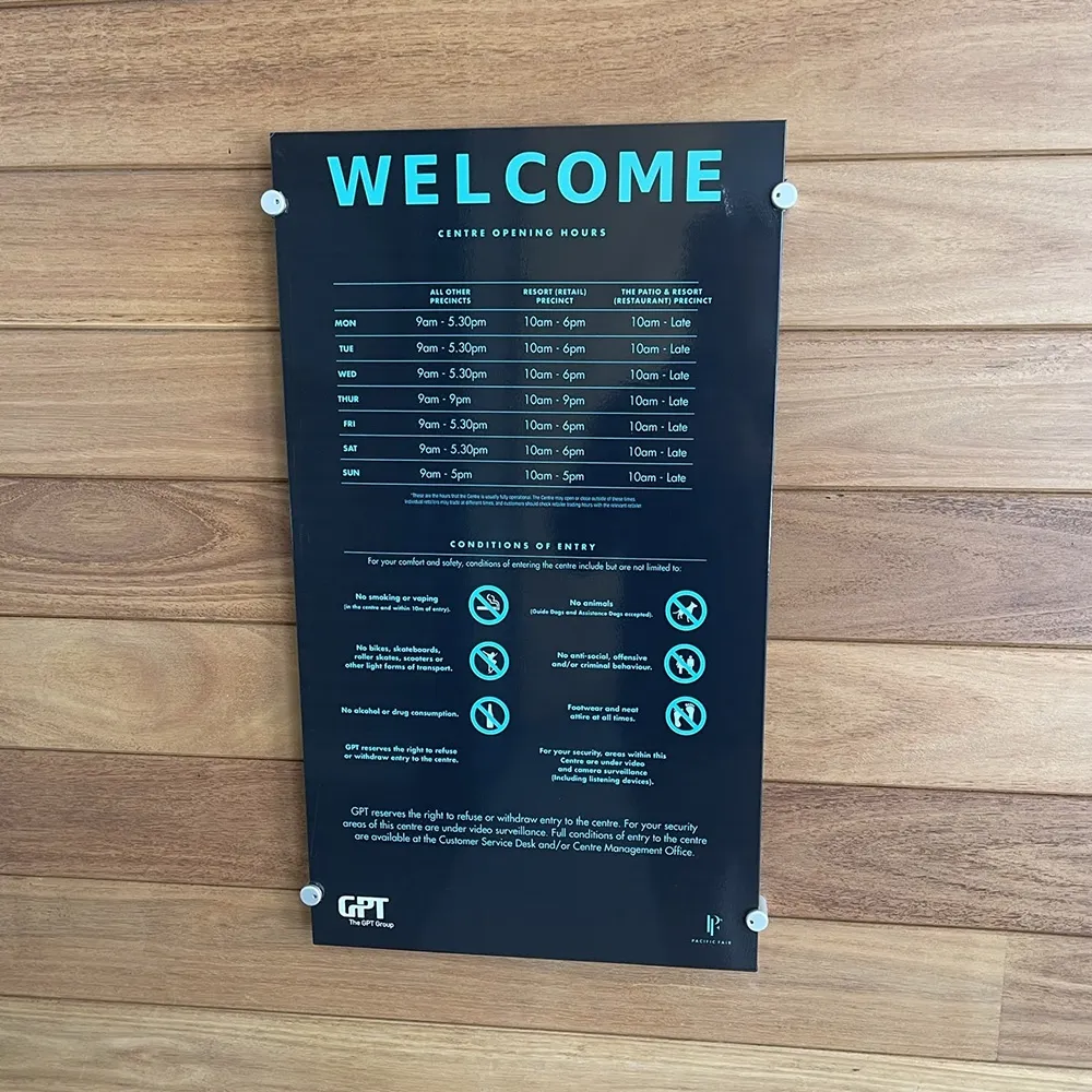 The sign standoff includes the necessary hardware for installation onto most surfaces. To install the sign standoff mounts, line up the standoffs on your graphic, and measure the distance between the centre of each stand off. Drill holes in the wall, if necessary insert the plastic wall anchors, and then screw the base of the standoffs into the wall. Then screw the tightening allen screw on each standoff to secure the standoffs. The sign standoff mounts are used in information centres, welcome centres, office lobbies, doctor offices, and many more businesses!