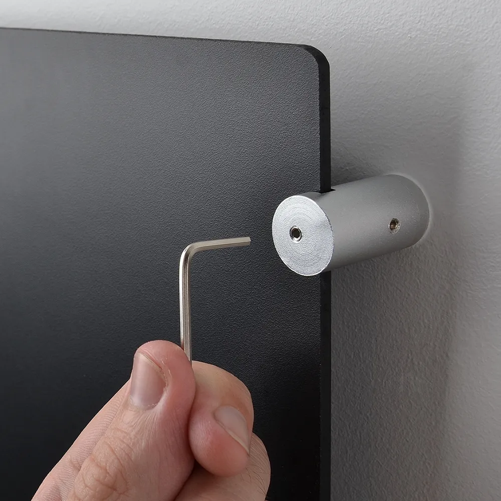 This sign stand off is a set of (4) aluminium standoffs. The durable sign standoff mounts have a satin silver finish that complement nearly any surrounding. The standoff signage, sign stand off holds material that is up to 3.45 mm thick. The standoffs feature edge-grips, meaning they hold your custom signage on the side, as opposed to through standoffs, which require a hole drilled through the signage. The sign standoff has an allen key included that is used to tighten the screws to both your sign and the wall anchors.