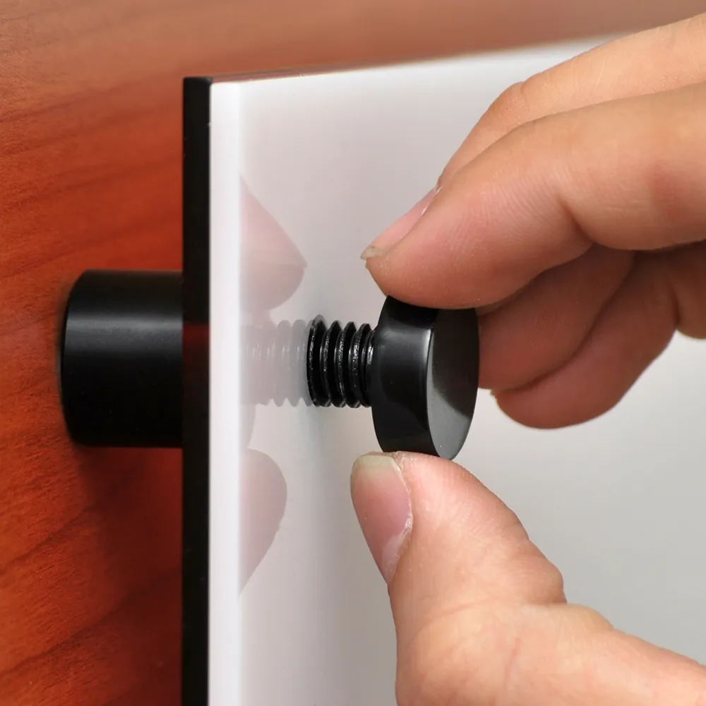 The flat top stand off is hand-tightened to secure your sign to the wall. The wall display system has installation hardware included with the kit, and the screws and wall anchors work with most wall surface types for an easy set-up. Order these mounts for your business today!