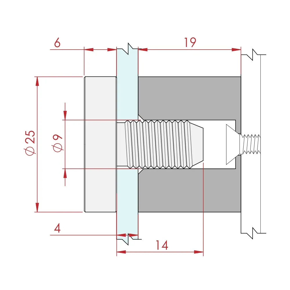 These screws and wall anchors install into most surface tapes for a fast and simple set-up. The sign standoff is a through-mount, with a 9mm hole needed to be drilled through the signage for the mounts to hold it. The flat-top mounts are hand-tightened to secure the display to the wall!