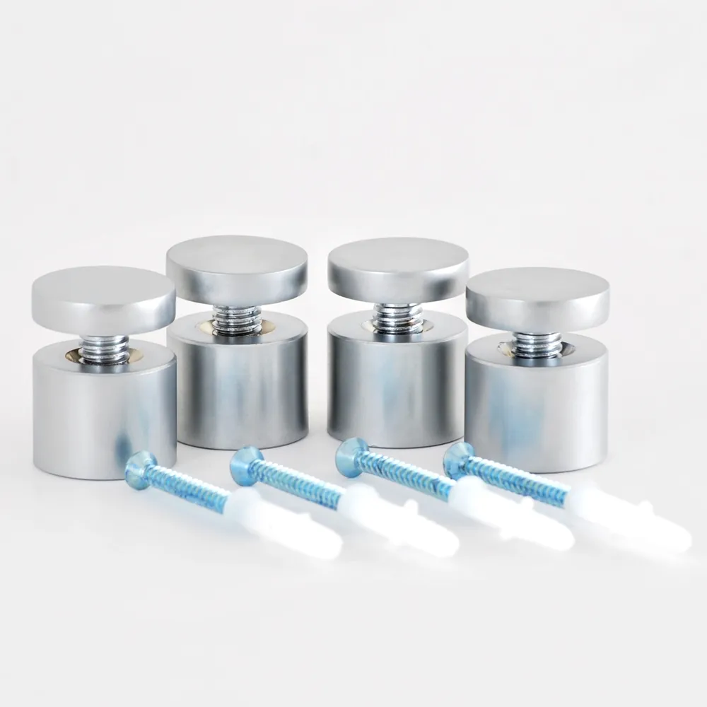 The signage hardware, sign standoff has a satin silver finish. This allows the mounts to display in nearly any location without worry of clashing with the decor. The sign standoff displays your company logo or identifies specific rooms, using the interesting 3D design to draw passersby attention.