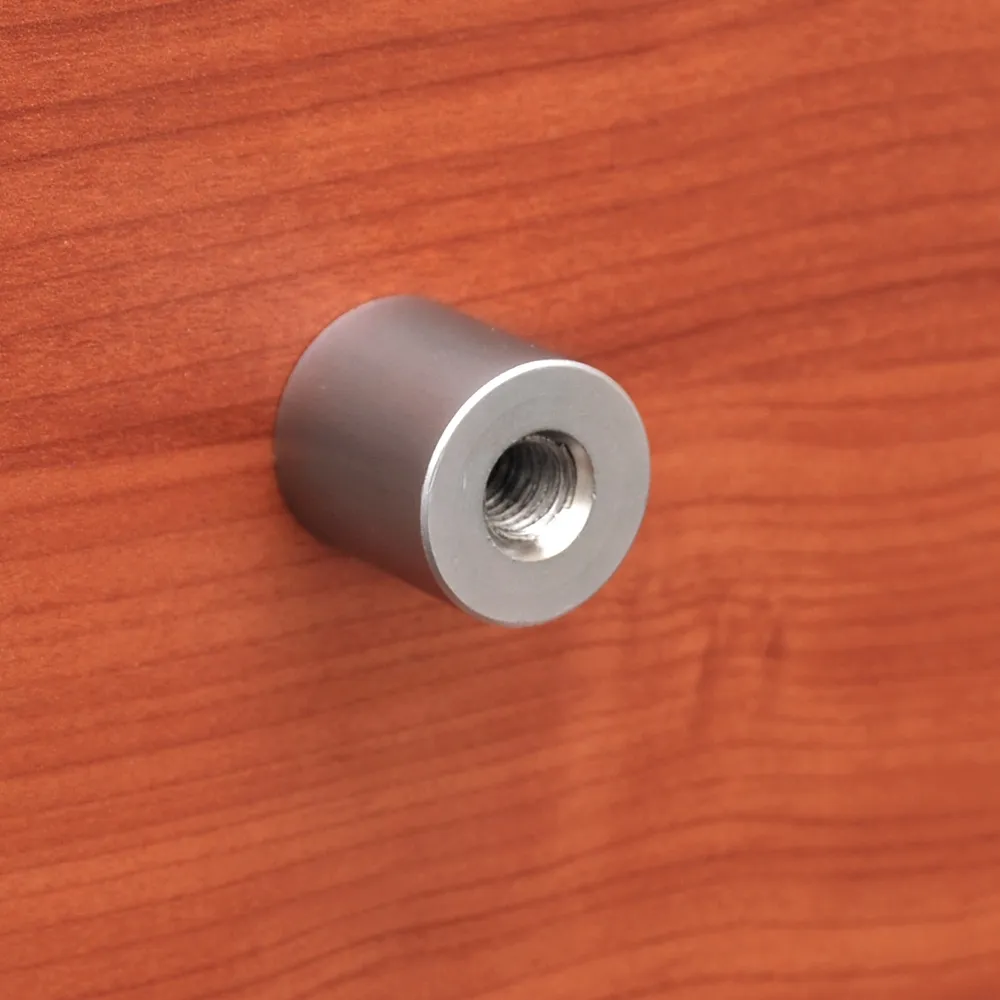 Standoffs, display systems, and other wall mount sign holders are through stand offs that require a 9mm hole to be drilled in your signage. The signs are secured to the wall by hand-tightening the flat top mounts.