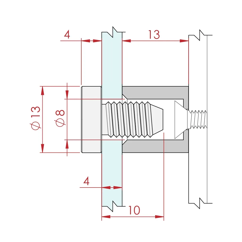 The brass standoff, also known as a panel clamp and a sign stand off, holds a sign that is up to 6mm thick. The signage can be made of a multitude of materials, including stone, acrylic, plastic, wood, and glass. The standoff is made from solid brass for a long lasting mount. This brass standoff is a through mount, requiring a 8mm hole to be drilled in your signage in order to install the sign. The signage mount has a hardware kit with screws and wall anchors in order for installation to most wall surface types.
