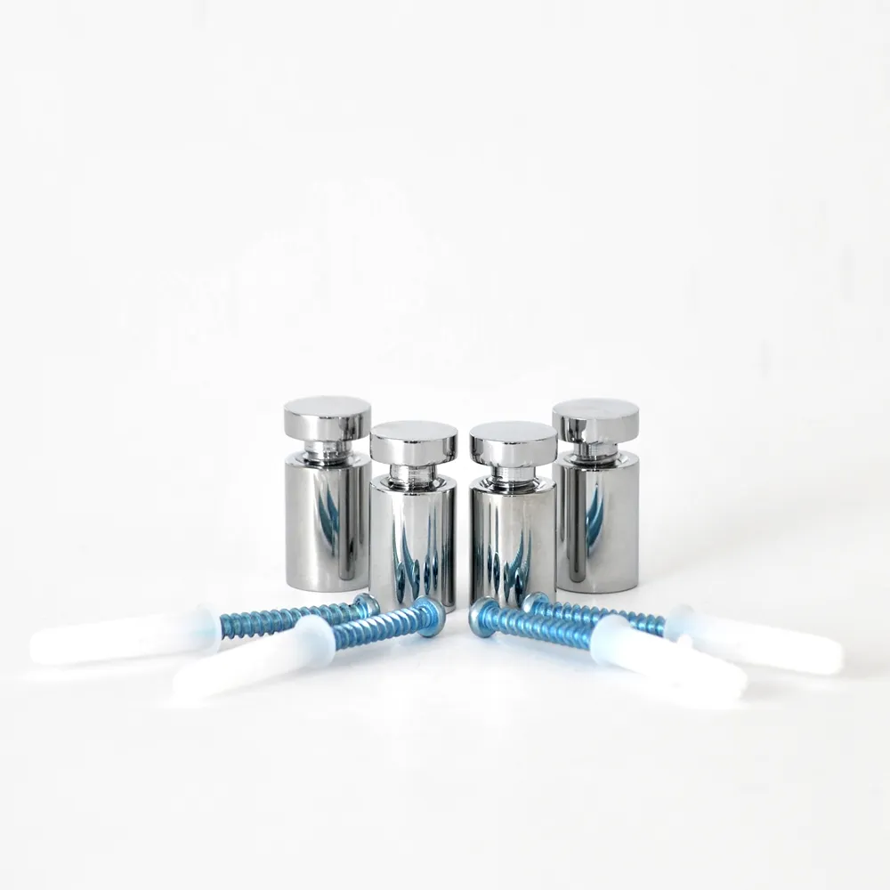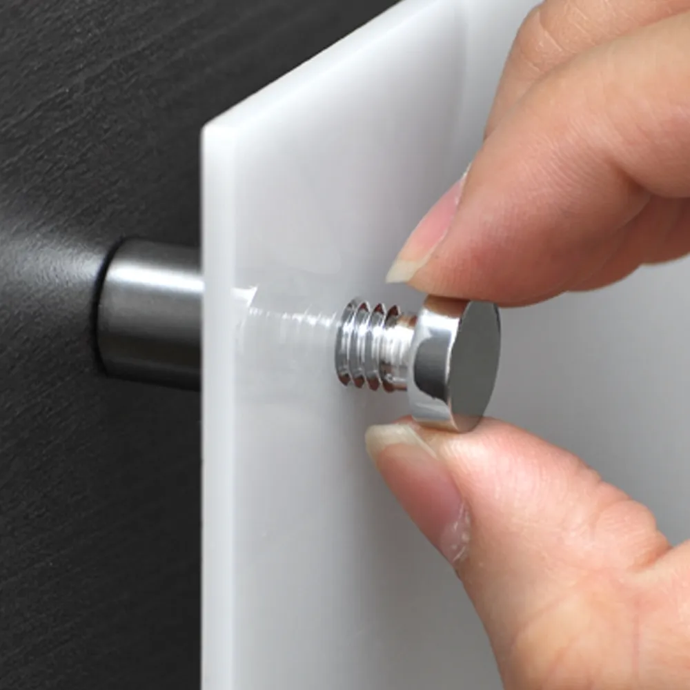 The chrome hardware, also known as a sign standoff, holds signage up to 10mm thick. The displays are used in a variety of different businesses, including casinos, hotels, universities, exhibition halls, and conference centres.