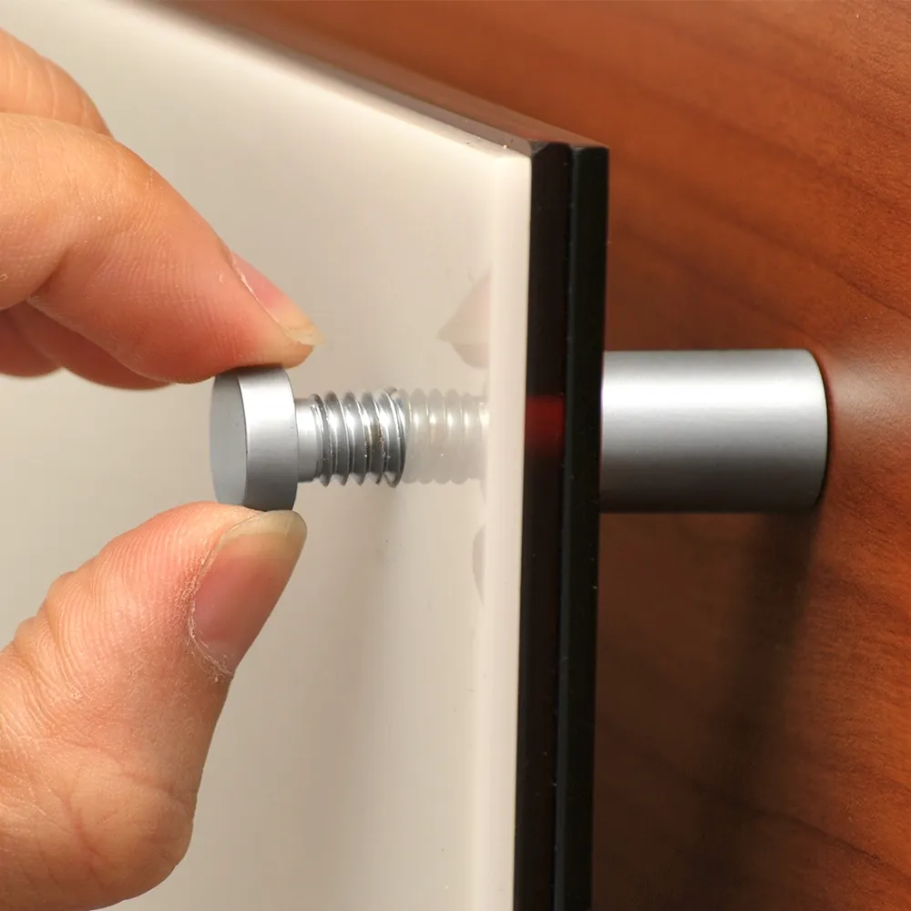 Signage standoffs, sign displays, and other panel clamps display various signage materials with ease, with acrylic, glass, plastic, wood, and stone all commonly used by customers. Your sign can be up to 15mm thick to fit with these mounts. The panel clamps are through standoffs, with a 8mm hole needed to be drilled in signs for mounting. The signs are then hand-tightened in order to secure them to the wall. Panel clamps have installation hardware included ,with mounts and wall anchors that will work with most surface types.