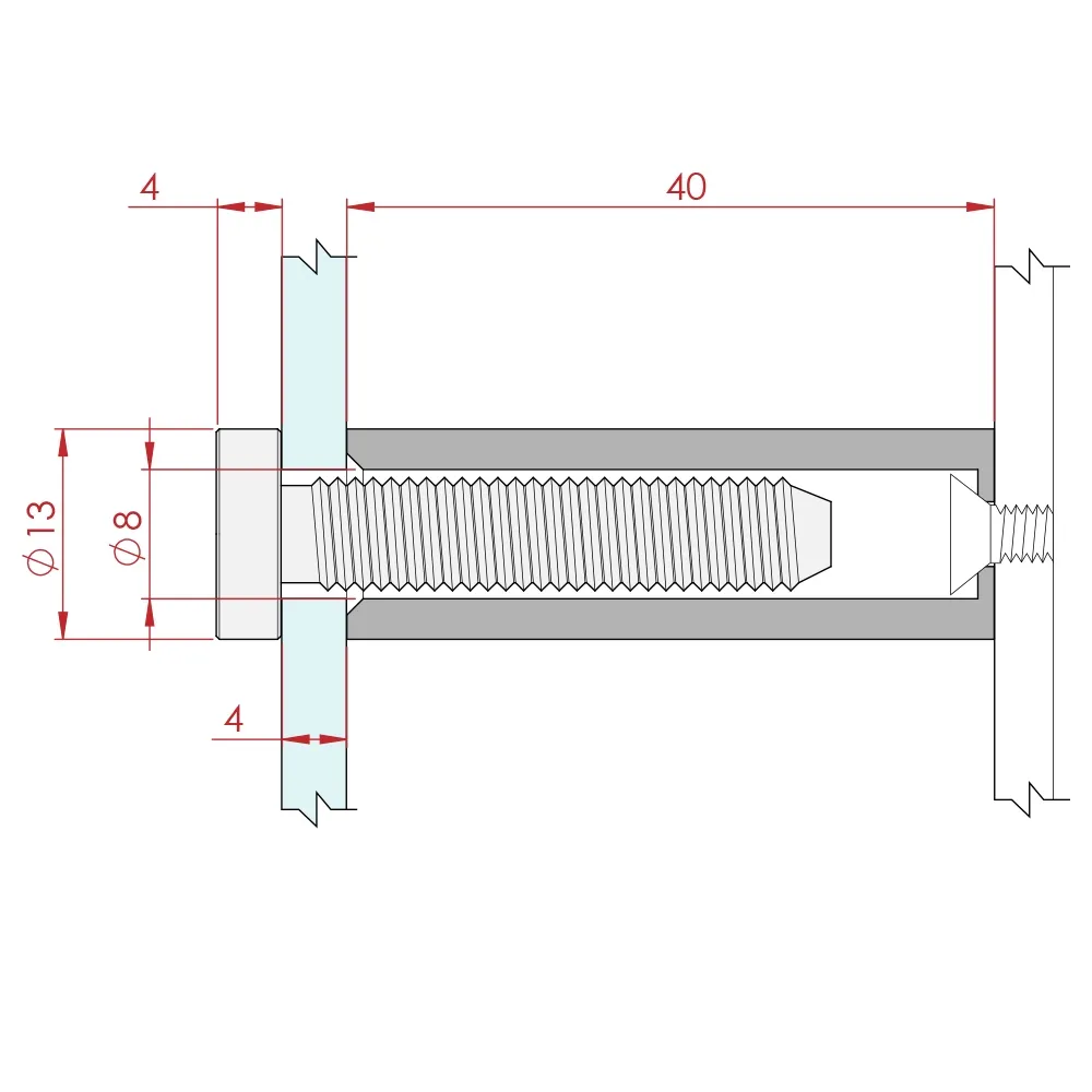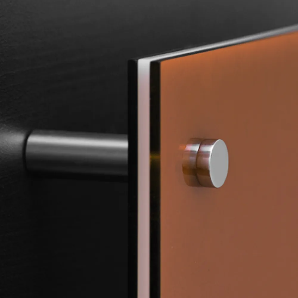 This panel clamp is a through mount for displaying signage. A 8mm hole will have to be drilled through your signs in order to use these standoffs. The sign display, panel clamp holds many different signage materials, including wood, stone, acrylic, glass, and plastic with thicknesses up to 22mm.
