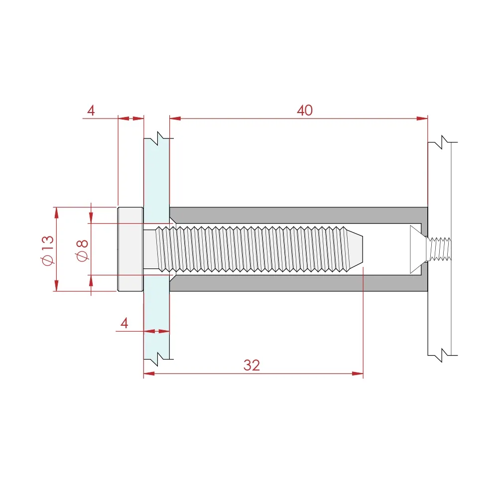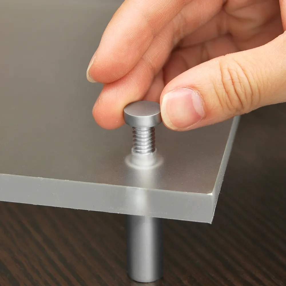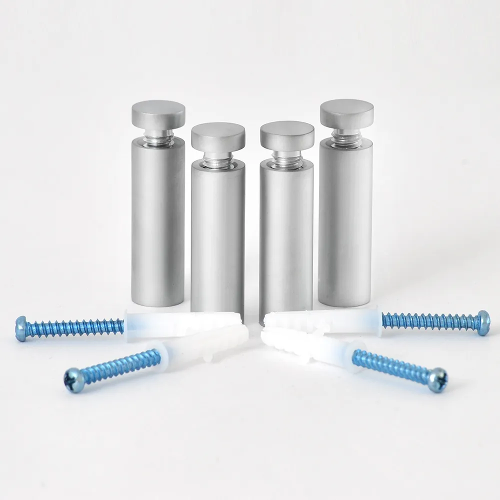 The sign standoff, also known as a wall display fixing, holds many different signage materials, including plastic, glass, acrylic, stone, and wood. The signage can be up to 22mm thick! The sign standoff is a through mount, with a 8mm hole required to be drilled through your signage for mounting purposes. Installation hardware is included, and the (4) wall anchors and screws will easily install into most wall surface types. The sign standoff is then hand tightened once your sign is on the wall to secure it. These wall display fixings make an attractive addition to your company!