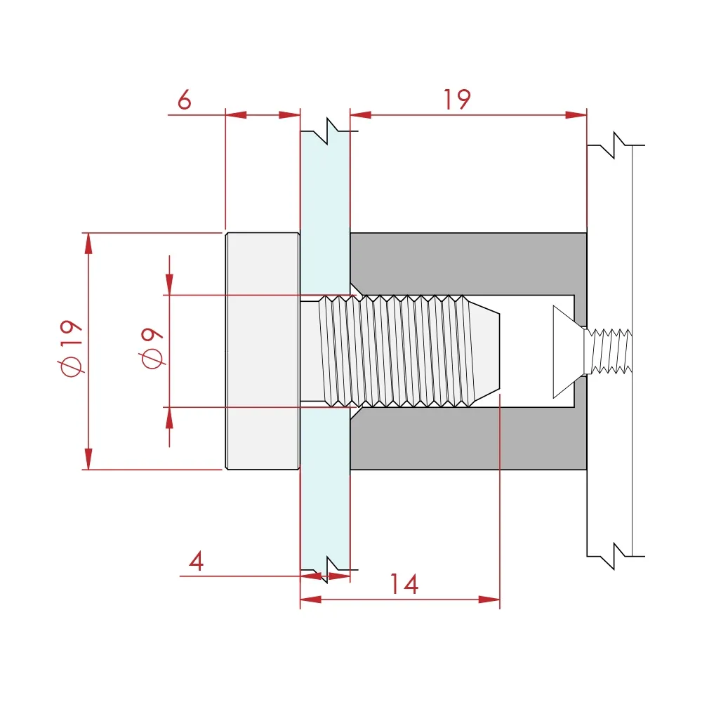 19 x 19 mm Satin Silver Price is for 1 set, 1 set = 4 standoffs