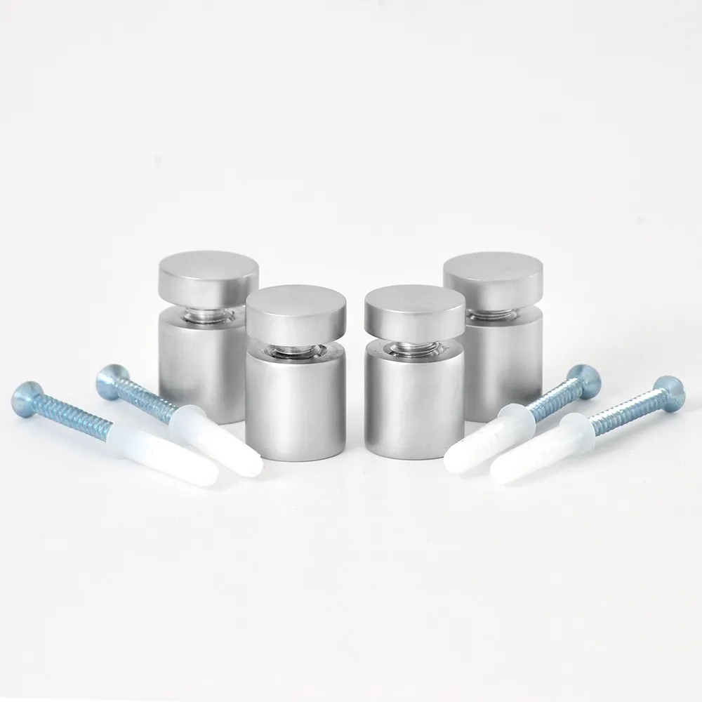 These standoff supports have installation hardware included. The (4) screws and wall anchors will install into nearly any surface without issues. The flat top mount can then be hand-tightened to secure your signage to the wall! Order this brass sign mount today for your business.