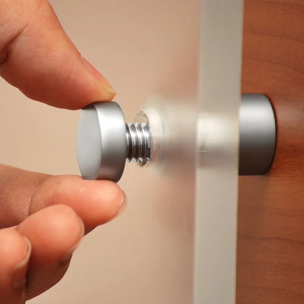 Brass signage, panel clamps, and other standoff supports are designed with a through style, requiring a 9mm hole to be drilled through your signage. The signs can be made of different materials that are up to 10mm thick, including stone, wood, acrylic, glass, and metal.