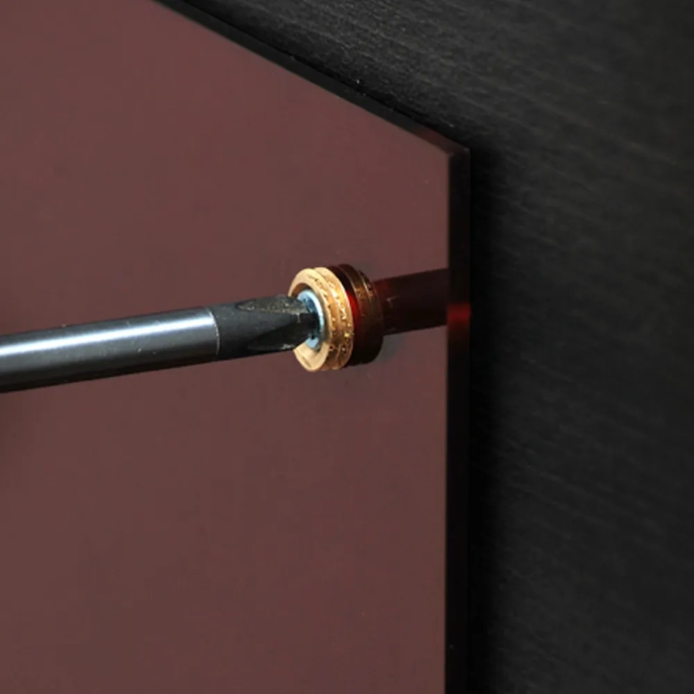 The sign support, brass screw cap features a satin chrome finish, easily working with any decor. The cover helps create a professional looking sign by covering the mounted screws with a mirror cap that helps draw attention to your signage without a high price tag.