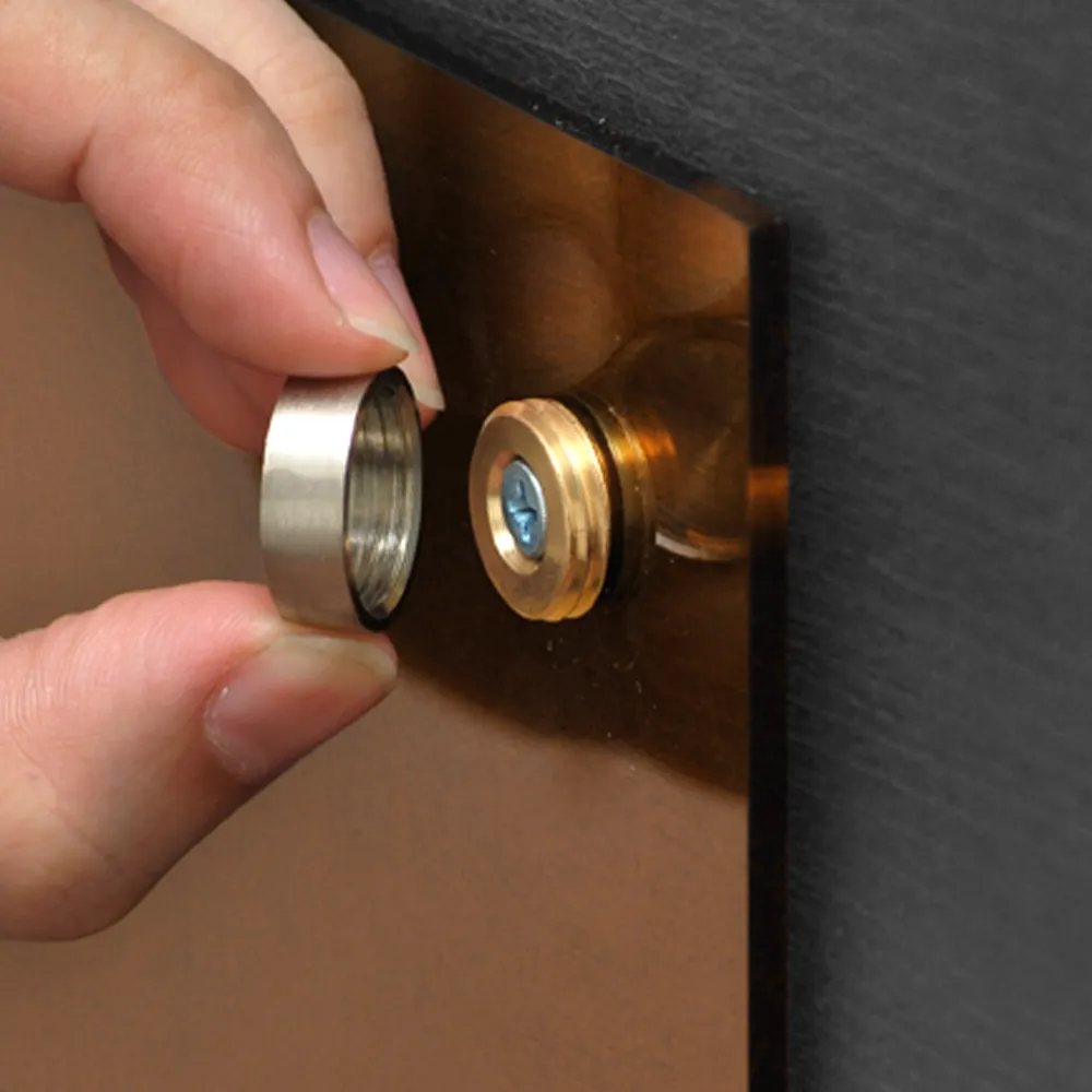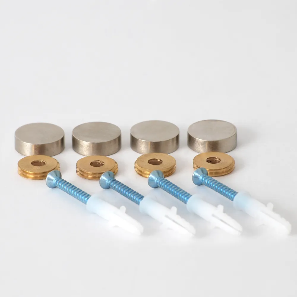 A chrome screw cover has installation hardware included. These wall anchors make installation onto most wall surface types an easy task. The 19mm diametre screw caps help make an alluring display that will attract the attention of passersby with ease without looking out of place. Use glass, metal, stone, wood, or plastic to create your sign!