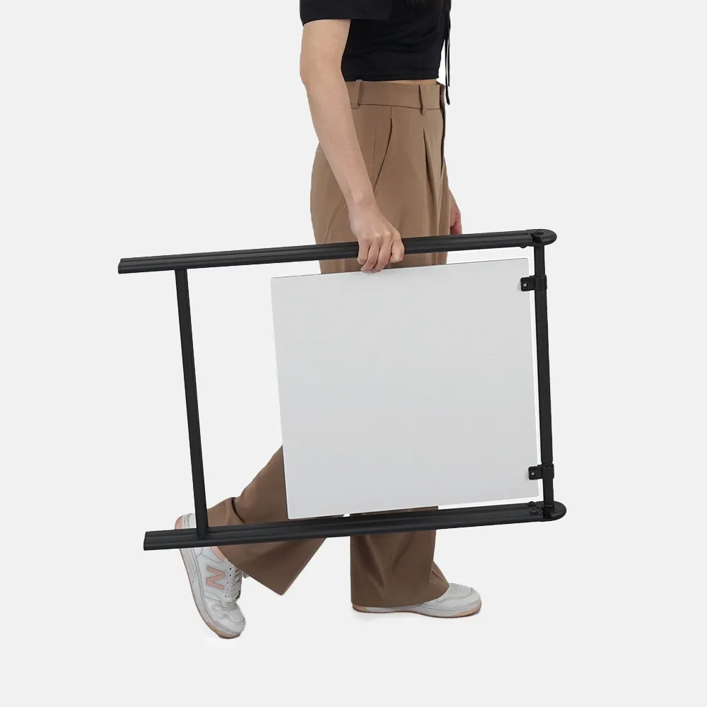 This A-frame pavement display, swing sign is designed for indoor or outdoor use. This unit is waterproof to ensure it can be used even during inclement weather. The portable design makes it easy to carry the unit into position or store it when not in use, as the whole display folds to only 60mm thick. The overall blank by blank size ensures that it can be placed on a foot path without impeding passersby. A cable lock is also available for purchase separately to add an additional security measure to the display outside of your business.