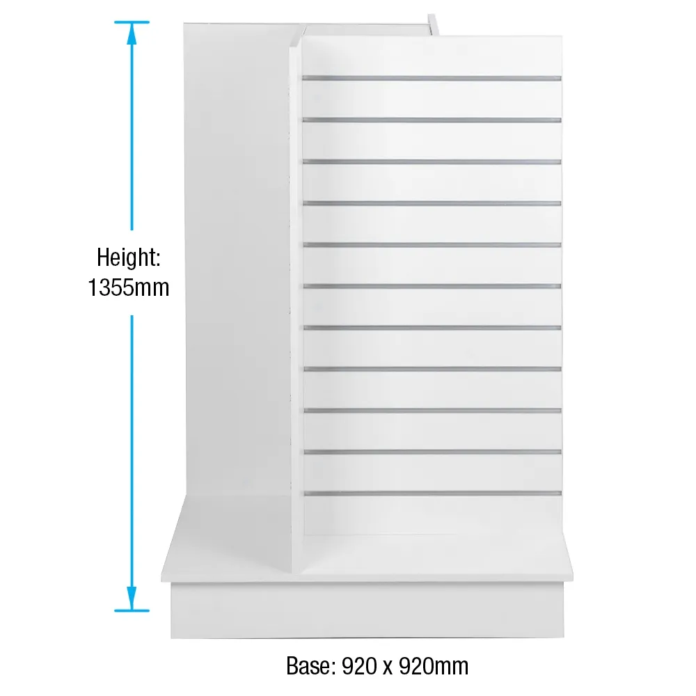 - Slatwall floor display has 920 x 920mm footprint with 11.7 sq. metres of display space
