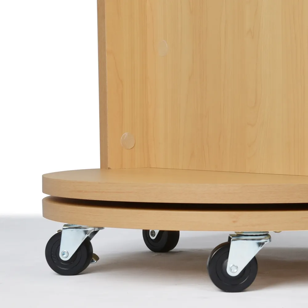 The rotating slatwall, one of many retail store fixtures now available, stands 1730mm tall to easily be seen within your retail store, gift shop, shopping centre, book store and more. The base has a 485mm diametre to minimise the room it takes on your floor whilst still offering 1.1 sq. metres of total display space. The base is 65mm above the ground to make maneuvering it easy. Each side can also have items placed directly on the base for additional room for placing your items.
