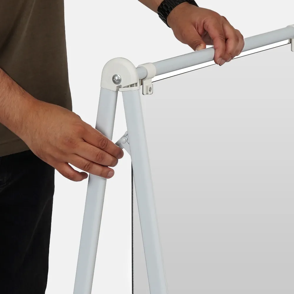 This swinging A1 sign is made out of alumnium, providing a durable backing that can have vinyl graphics adhered to both sides! Using dual-sided signage helps to increase visibility whilst maintaining a small footprint of signage stands to not interfere with pathways or merchandising displays. The display is made from 3.5mm thick aluminium with a white finish, offering a robust display with a neutral background ideal for any style of graphics to be adhered.