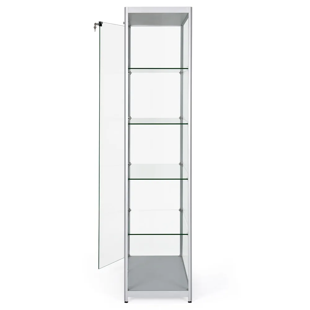 This glass showcase features an aluminium build to complement the glass sides with a silver finish that works well with the colours of any décor. The base has adjustable feet on each of the four corners in order to ensure stability with the unit when placed on uneven surfaces. Slimline Warehouse has fast shipping provided to anywhere in Australia, buy online today for your business!
