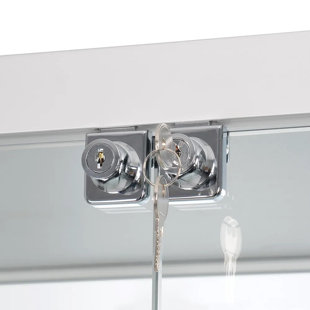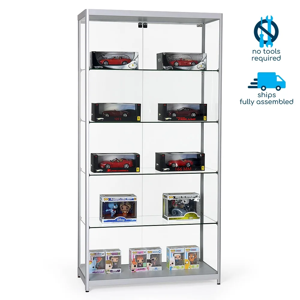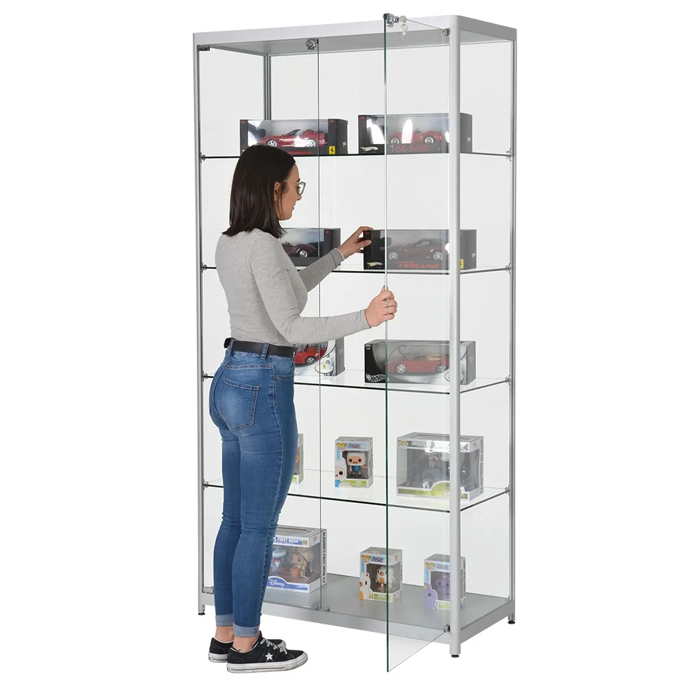 These commercial display cases feature two locking swing doors that secure items inside and prevent unwanted tampering and theft in retail stores, museums, shopping centres, art galleries, hotel lobbies, and more. The store fixtures are shipped fully assembled with insurance cover via lift gate truck to your door. Save the hassle of following complicated instructions and hours of your time by purchasing this unit that is ready to go out of the box! The full vision cabinet also has 7mm tempered glass on all four sides to provide viewing angles from all directions.