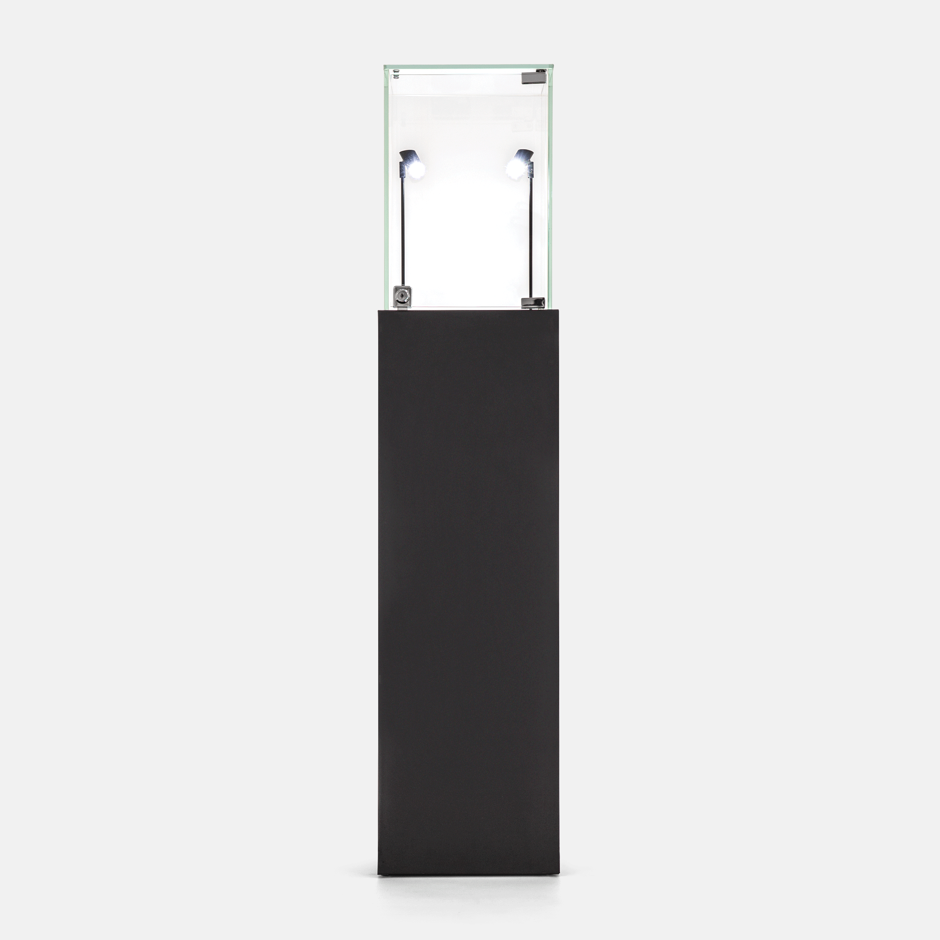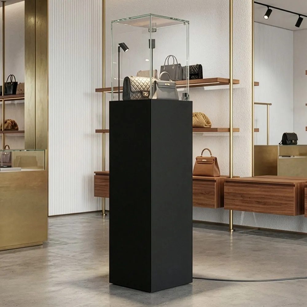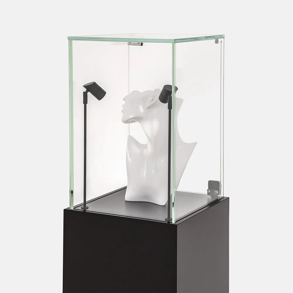 The illuminated display pedestal features a lockable hinged door to protect valuables from tampering or accidental contact. Its retail display plinth with lights suits hero products, collectibles and limited-edition releases. The lighted display plinth with glass top ensures customers can view items from all angles without compromising security.