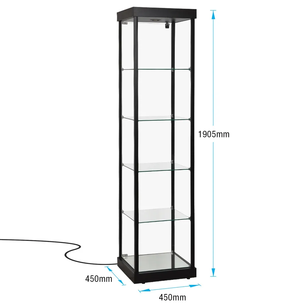 - Glass tower showcase is 1905mm tall with 450mm width & depth