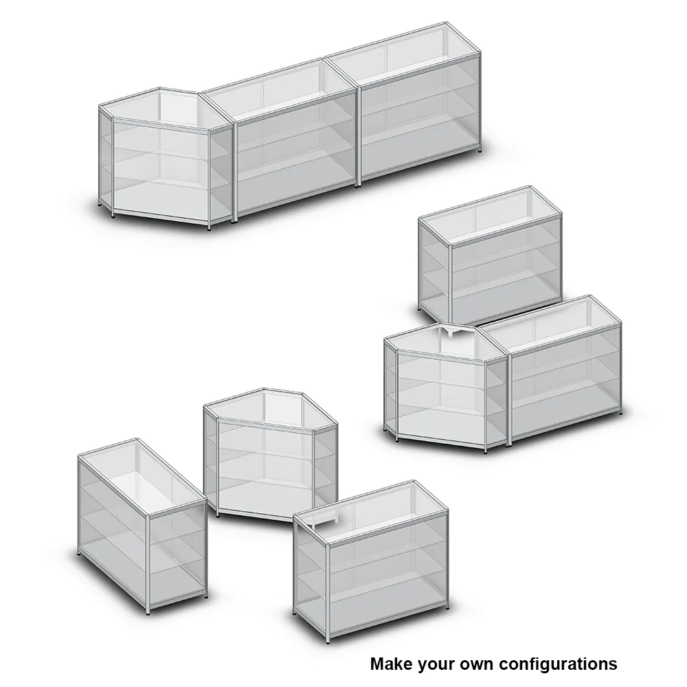 - Overall 965 x 1190 x 605mm display cabinet ideal for creating L-shaped retail counters