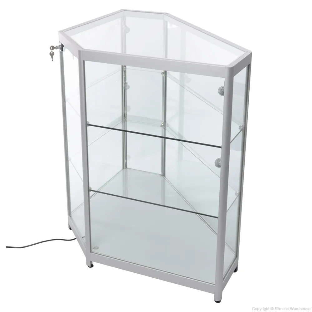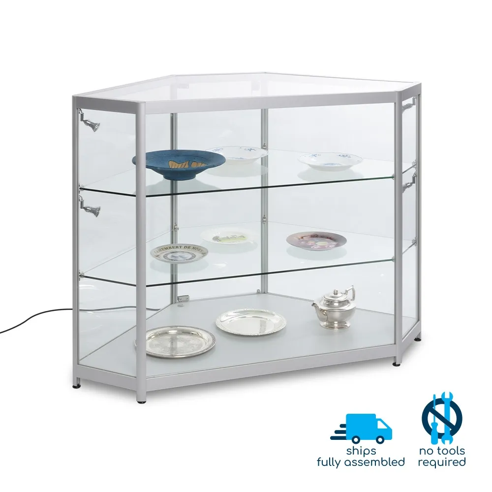 - Corner glass showcase uses clear 1130 x 555mm glass top for view of within from above
