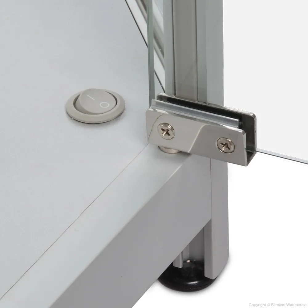 The display cabinet has an almost frameless design to offer full-view of items within. The minimal aluminium frame has a silver finish, a sleek look that adds durability to the 69kg retail fixture. The base of the lighted cabinet features adjustable feet, making it easy to ensure the entire case is level when placed on uneven surfaces, with the bottom level at 40mm above the floor. We ship this fixture completely assembled, ready to go out of the box for quick placement in your store! Order today by 3pm EST for same day Australia-wide shipping with this and most other in stock products, only from Slimline Warehouse!