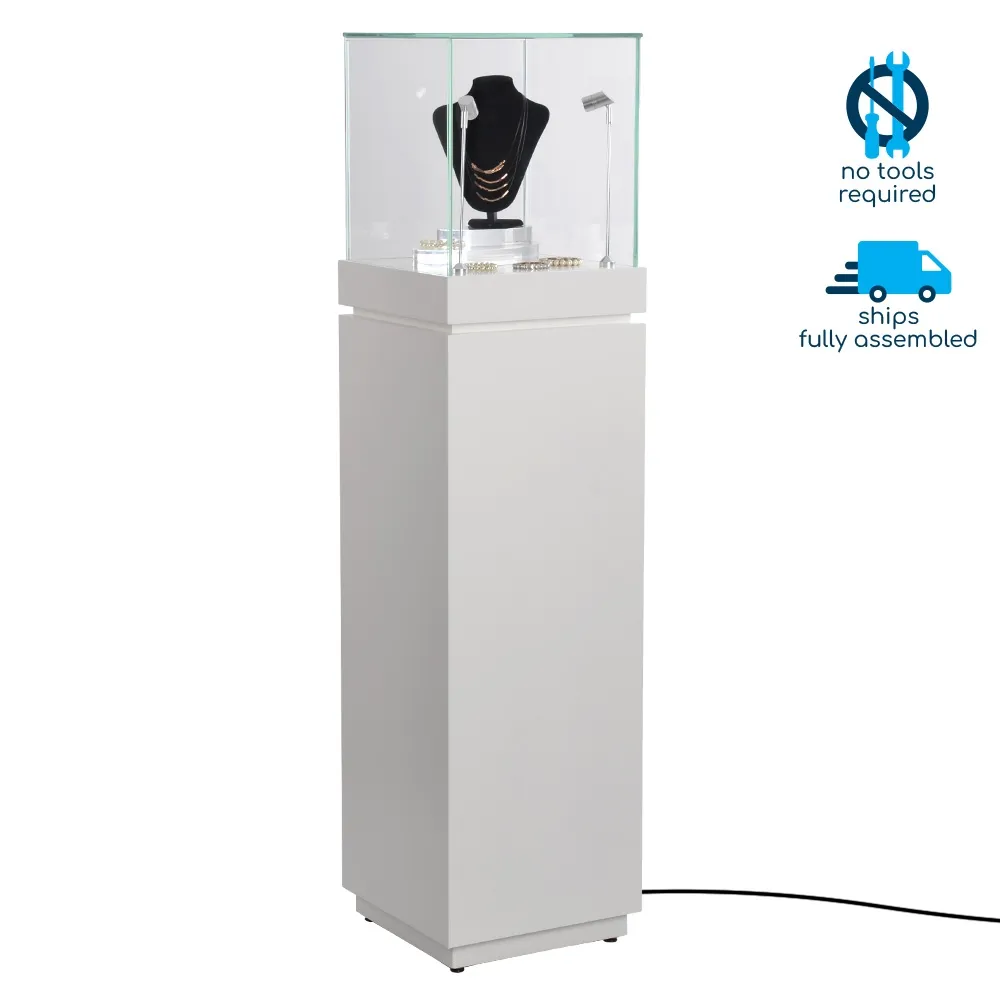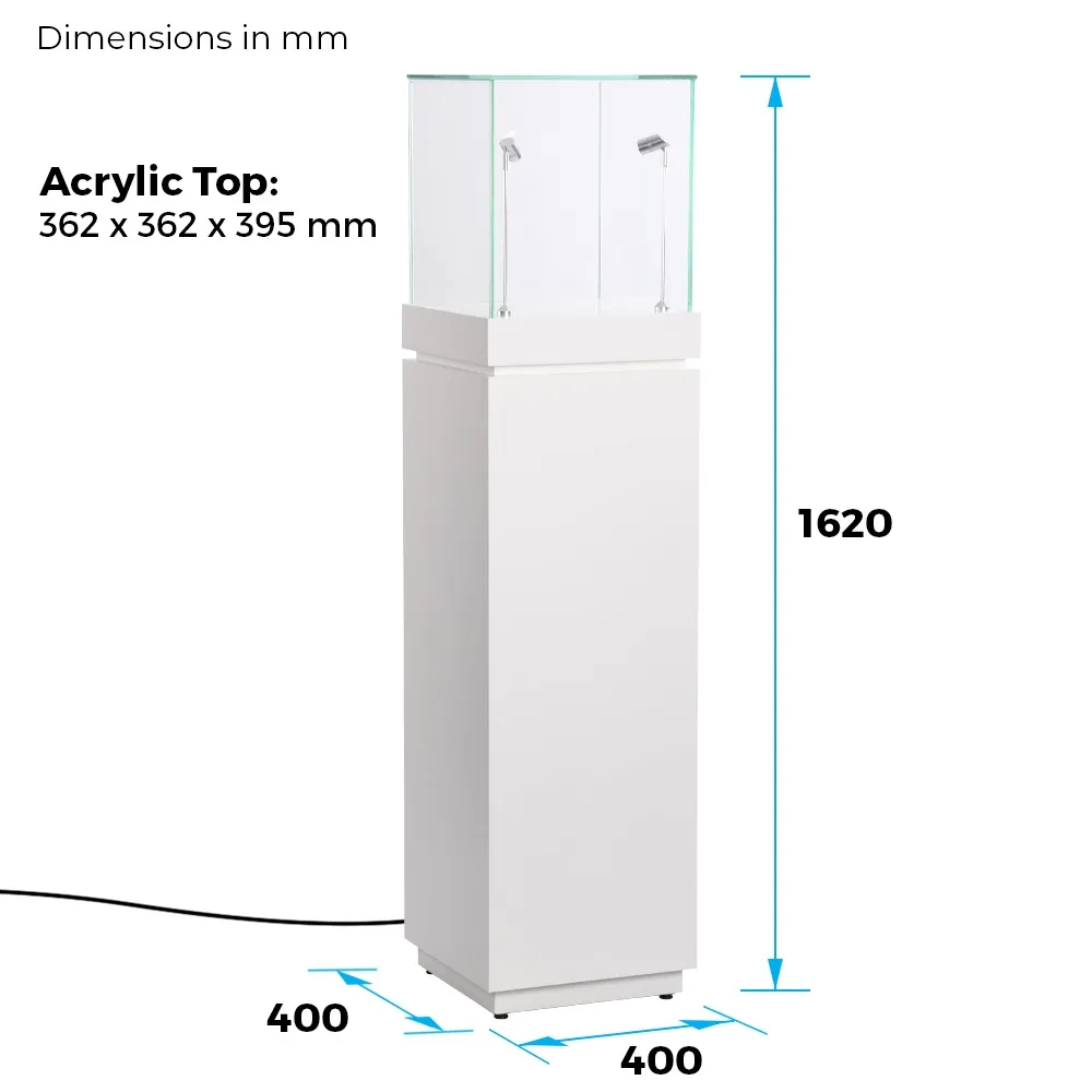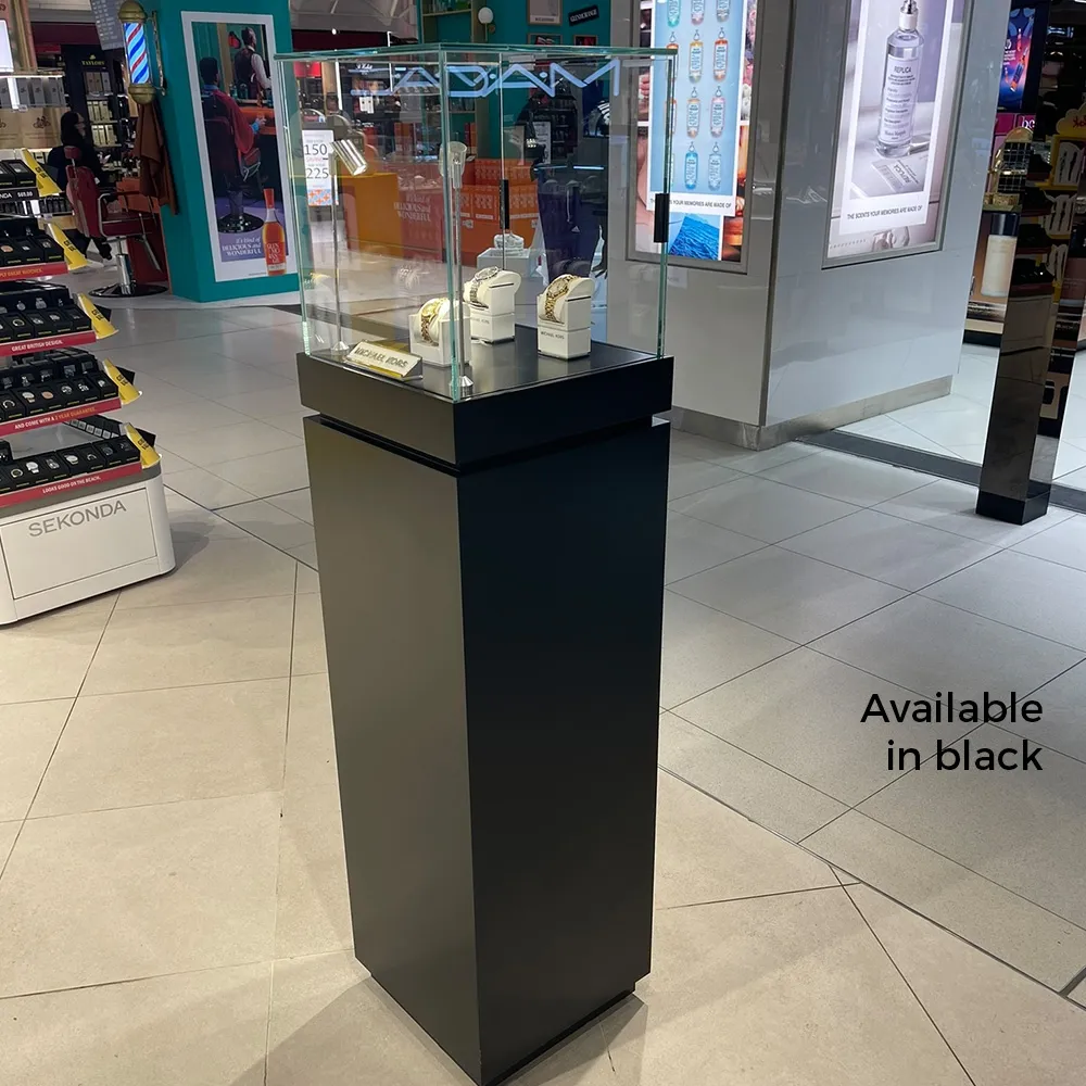 • Lighted display pedestal holds items up to 362 x 362 x 395mm in top showcase!