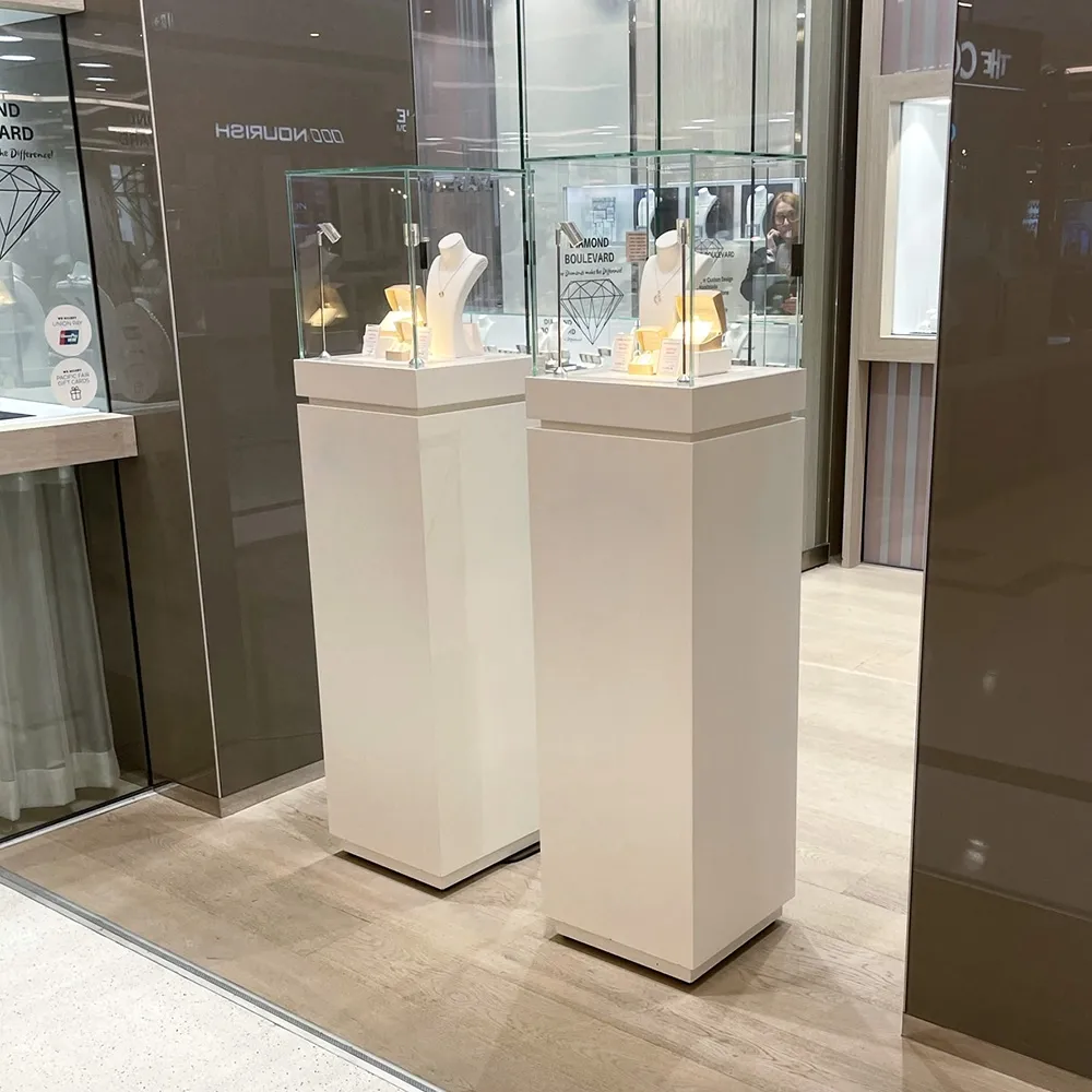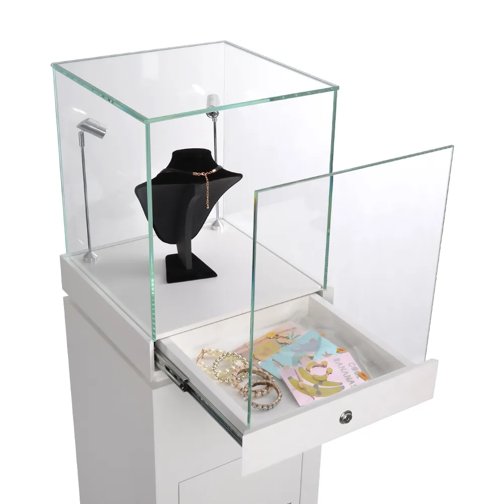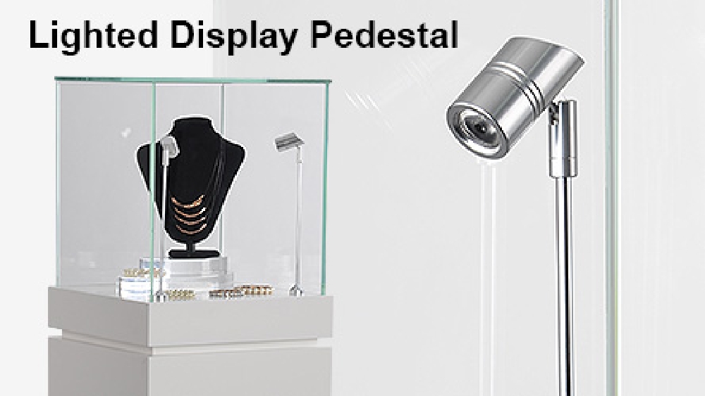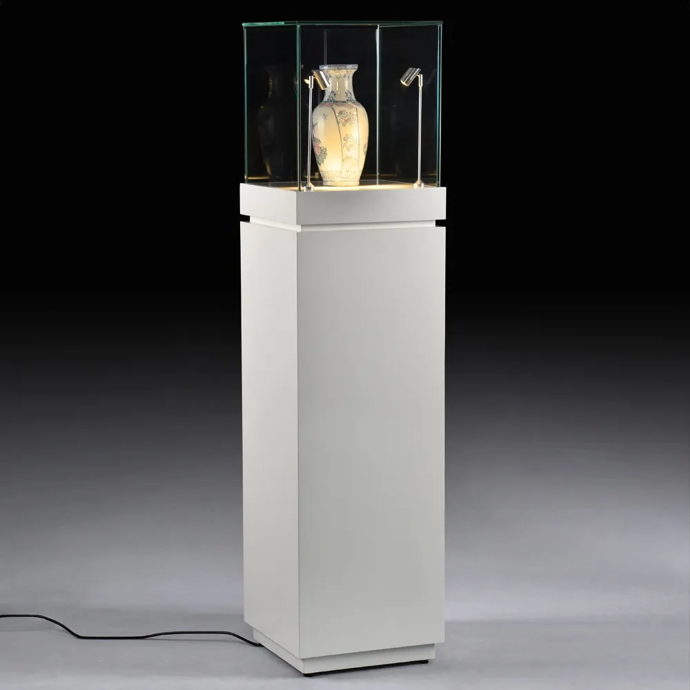 • Lighted display pedestal holds items up to 362 x 362 x 395mm in top showcase!
