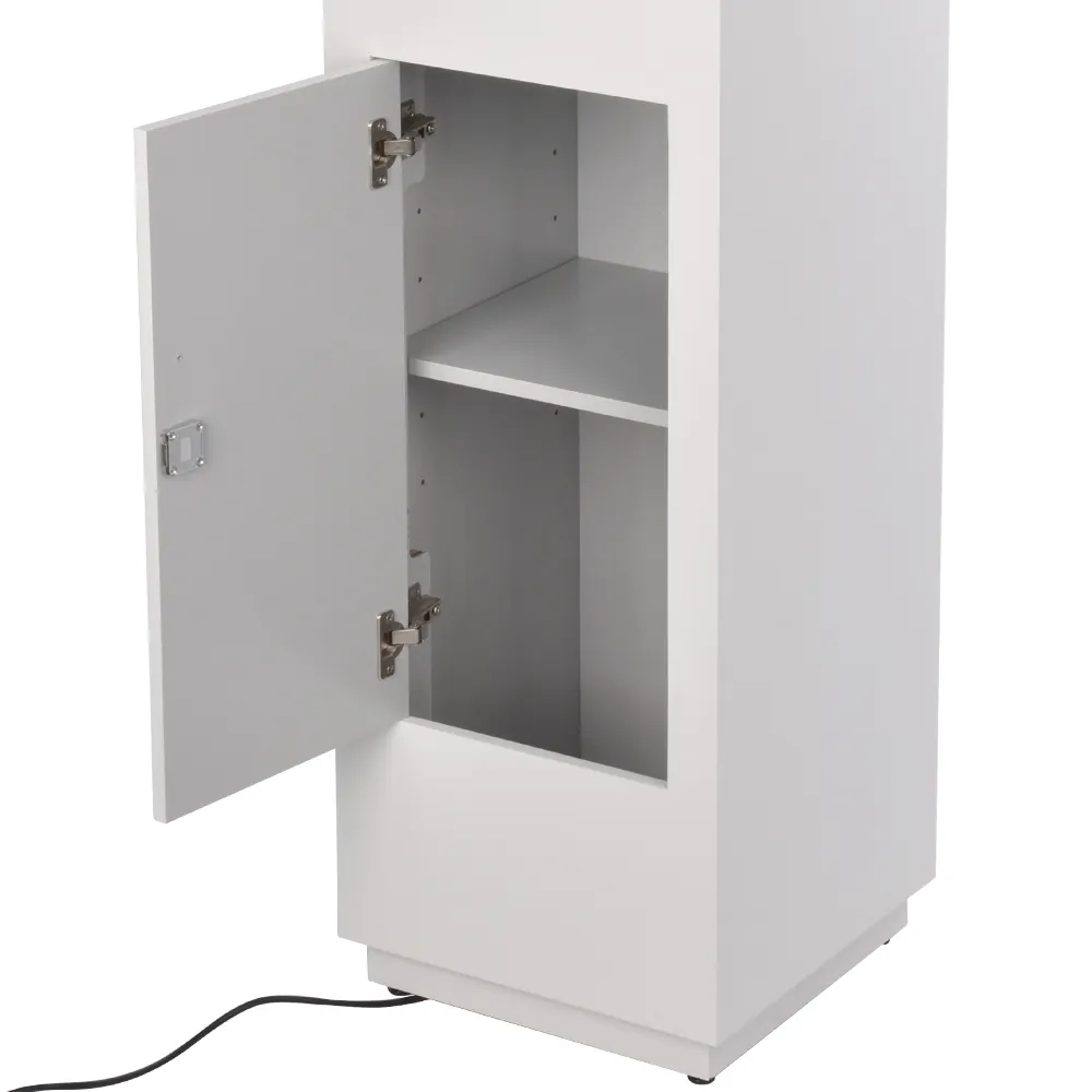 This lighted display pedestal is great for holding museum artifacts, art gallery pieces, high value retail products, and even jewelry at stores! The wood plinth pedestal cases are a secure stand, with a locks on both the storage and top case to help prevent theft and unwanted touching from visitors and customers. The top features a 8mm thick clear glass case, offering an unobstructed view of displayed items. The interior is able to hold items that are up to 362 x 362 x 395mm in overall size, easily accommodating a wide range of goods!